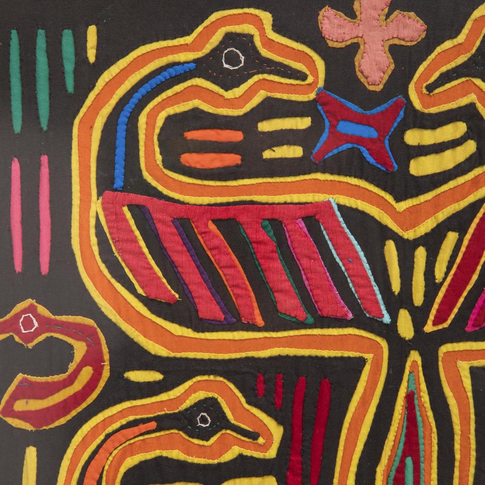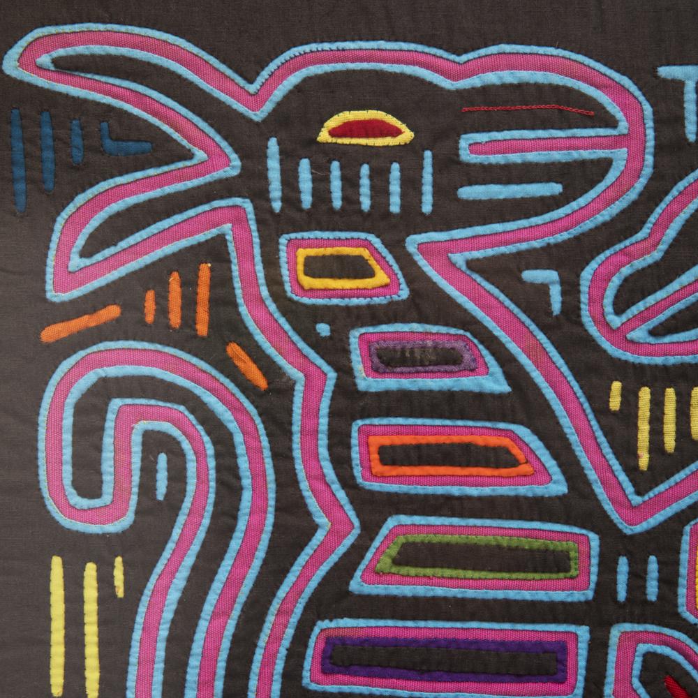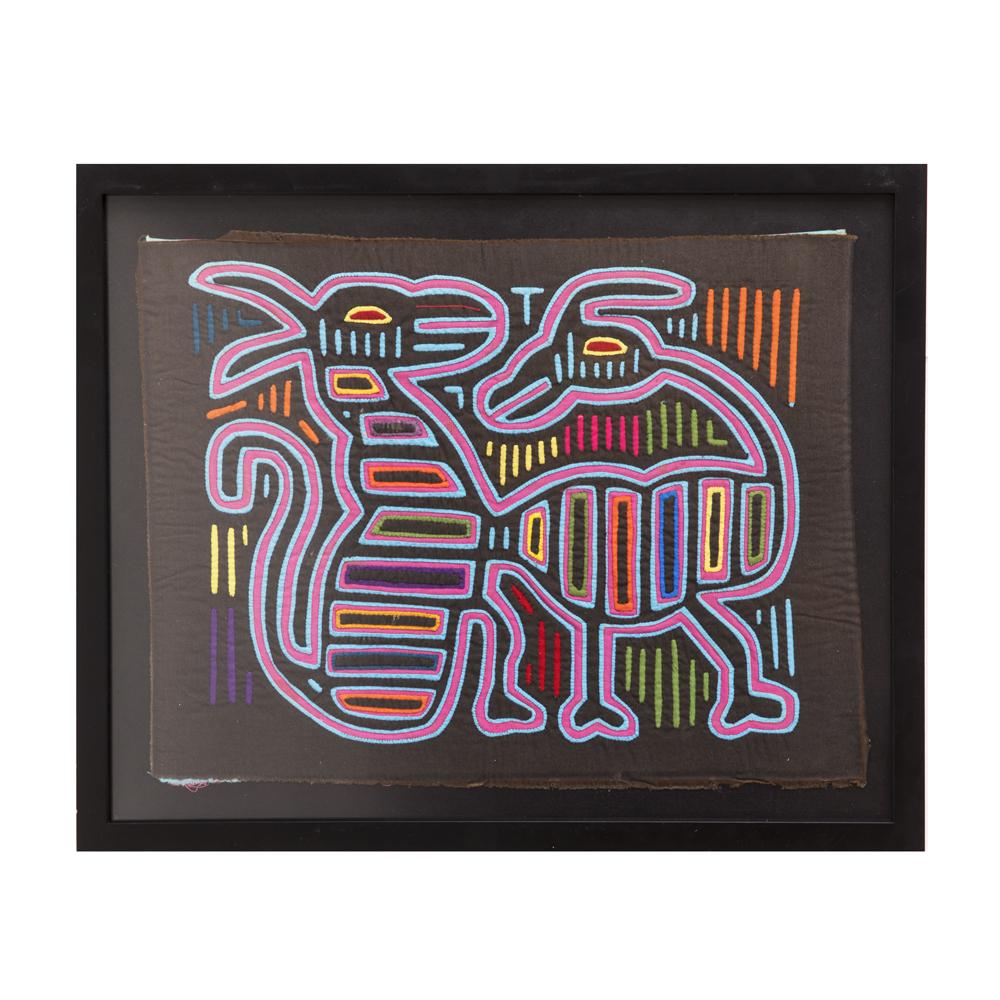 Details: Textile of intertwined animals. Dimensions: 21” x 17”