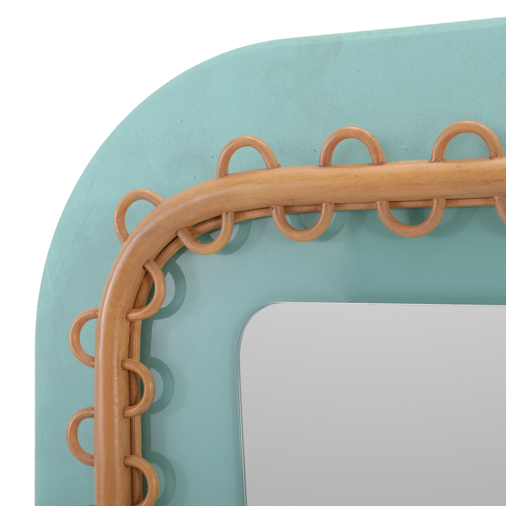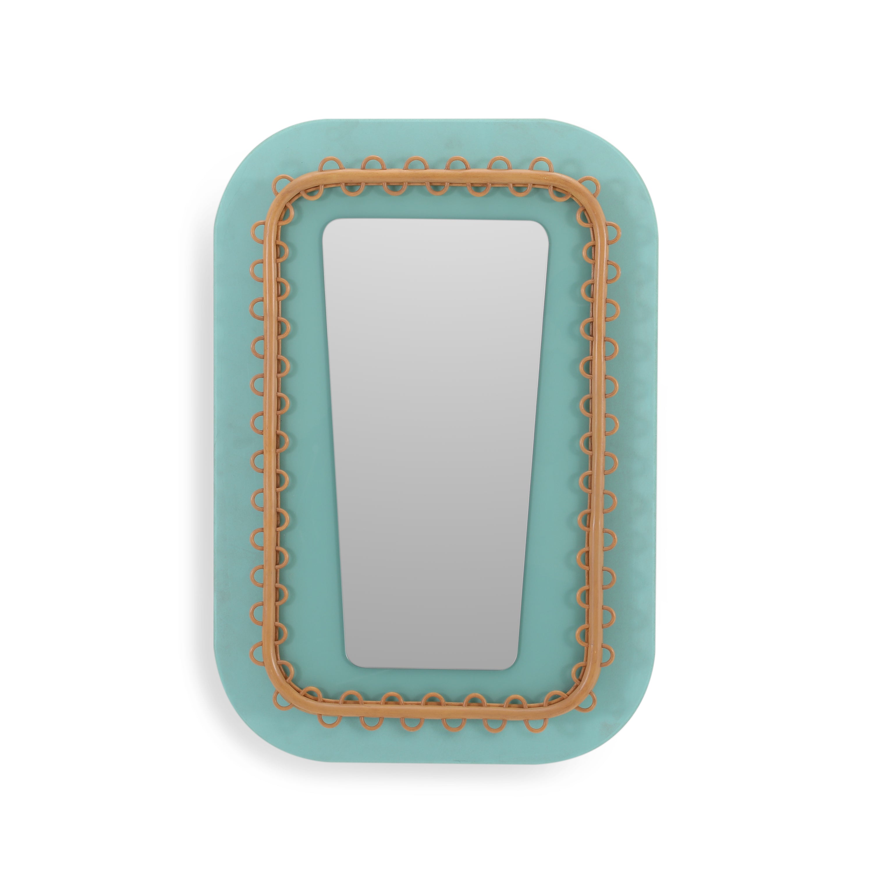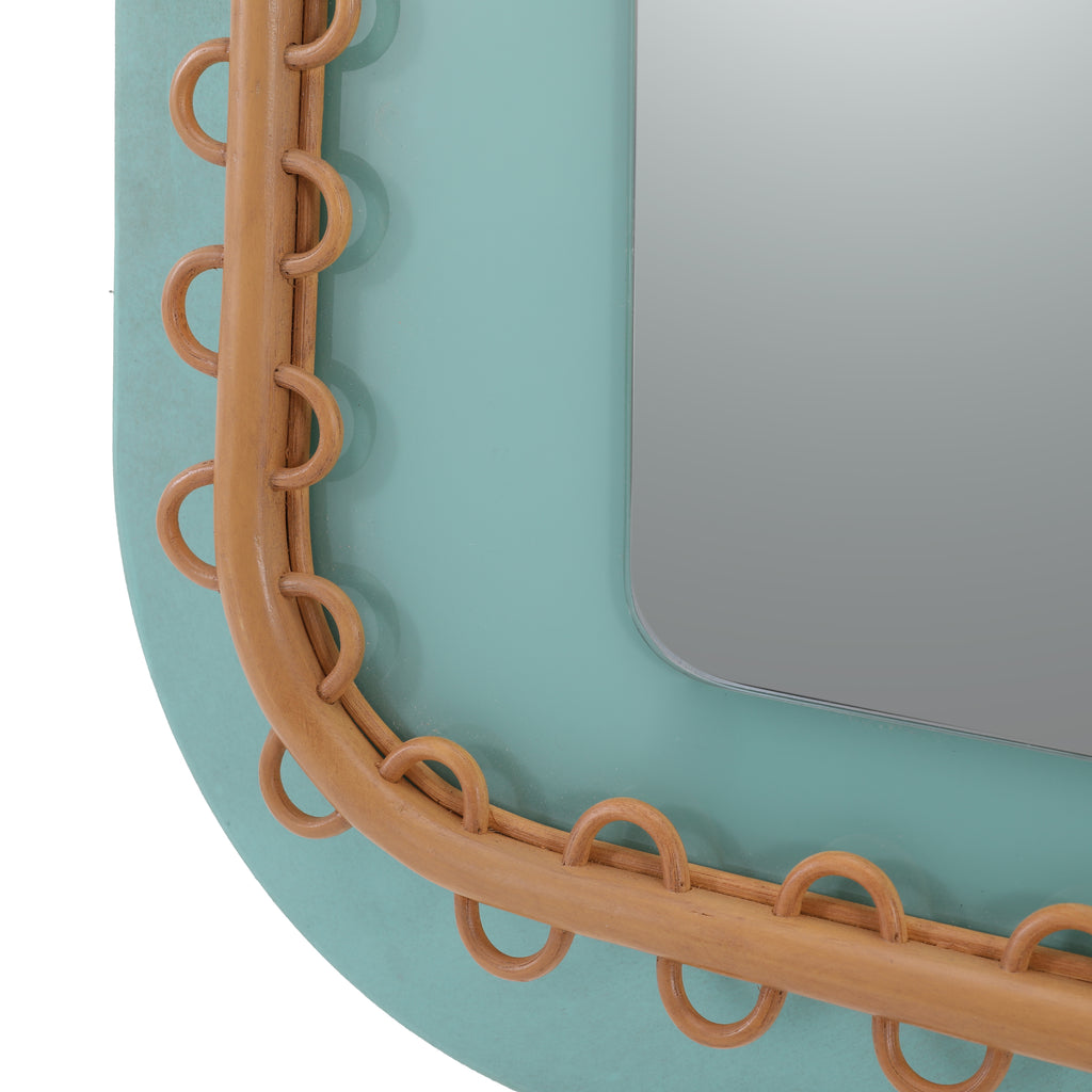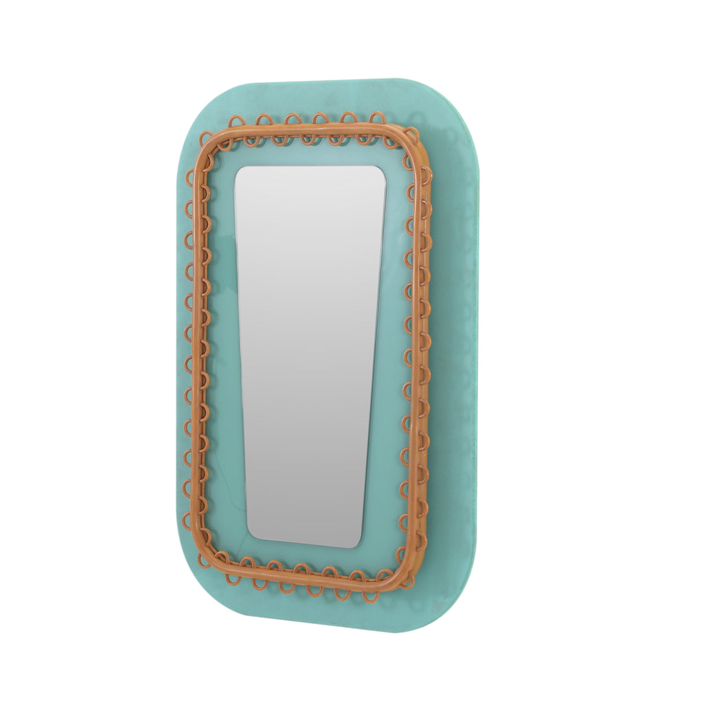 Details: Stylized venetian mirror with a mint green frame Dimensions: 55" H x 21" W x 24" D