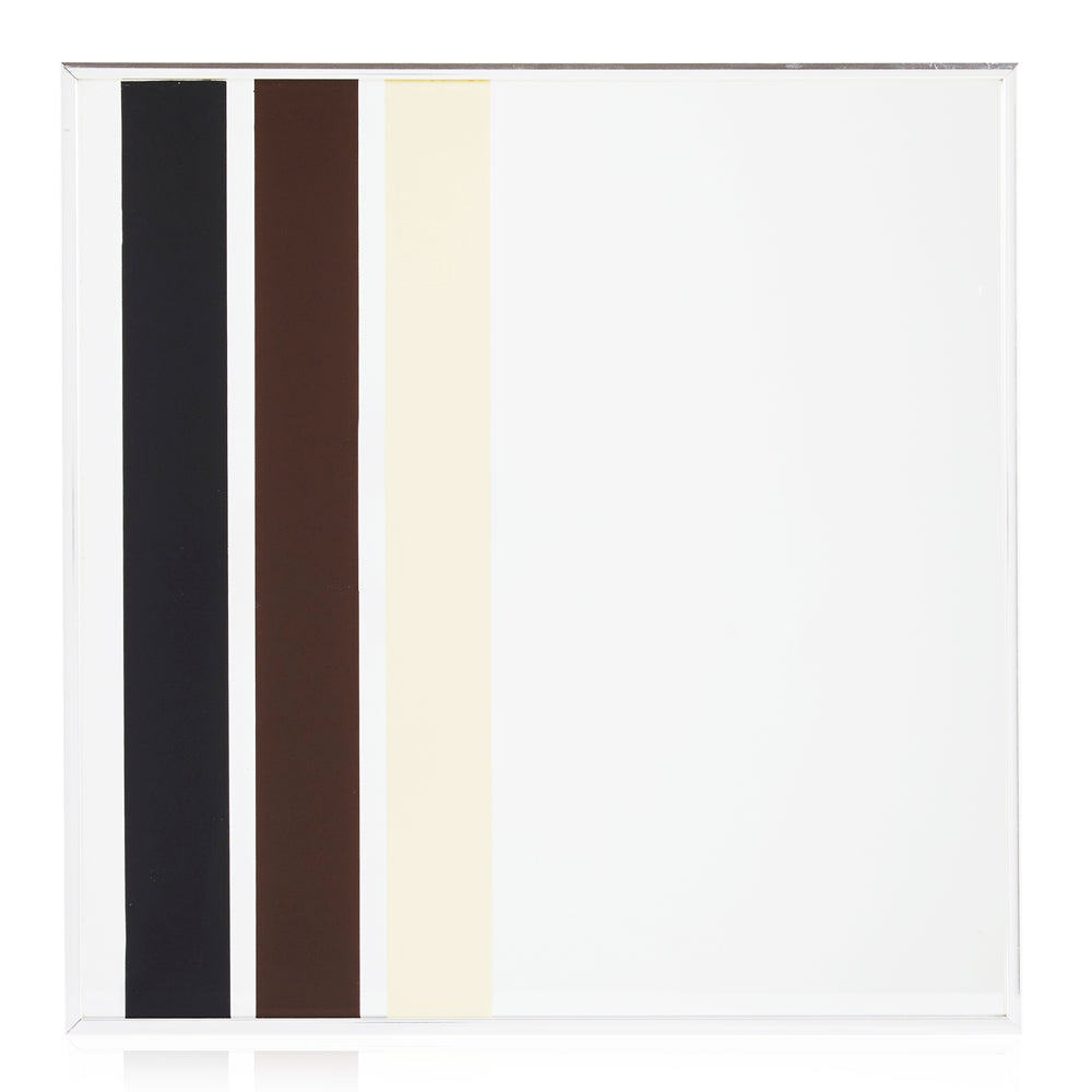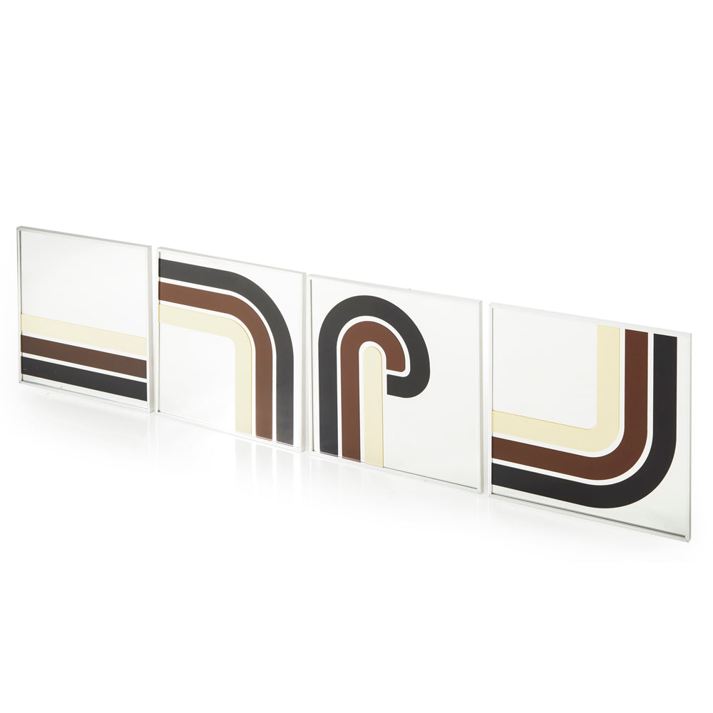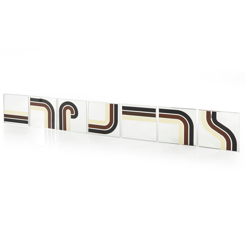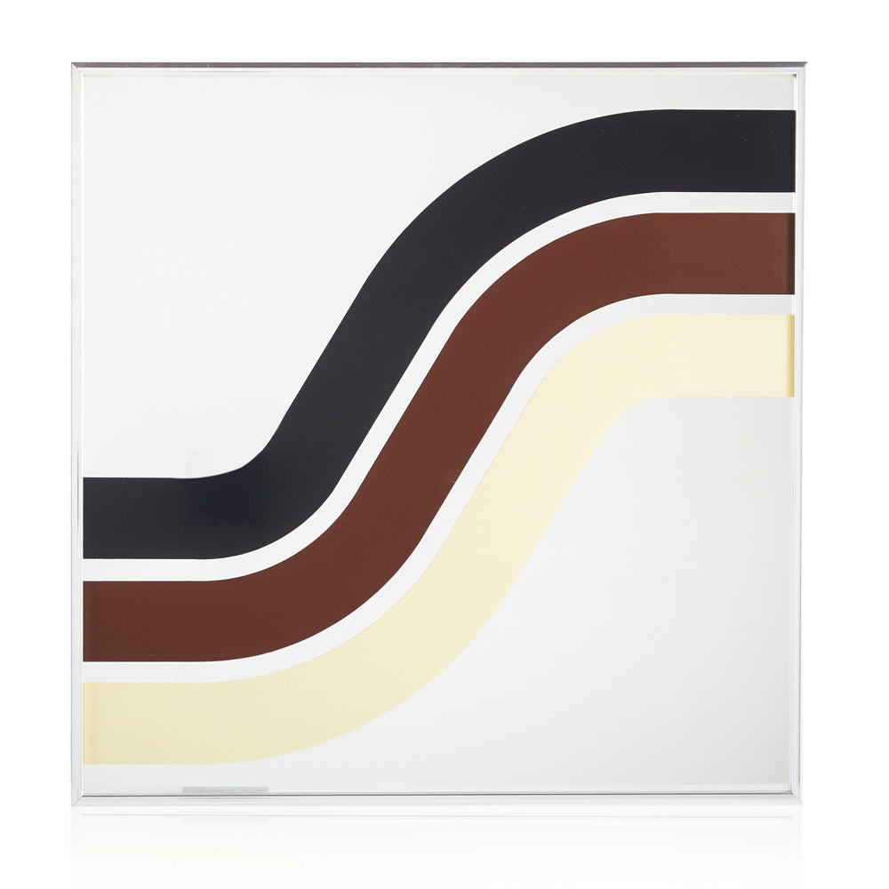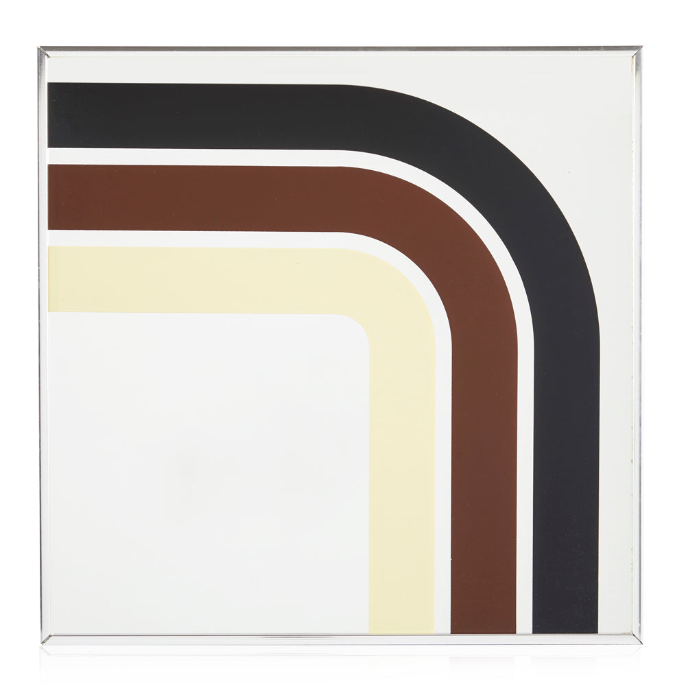 Details: Set of square mirrors with retro brown, black, and cream stripes **PRICE IS PER EACH SQUARE MIRROR** Dimensions: 19" H x 19 x 1"...