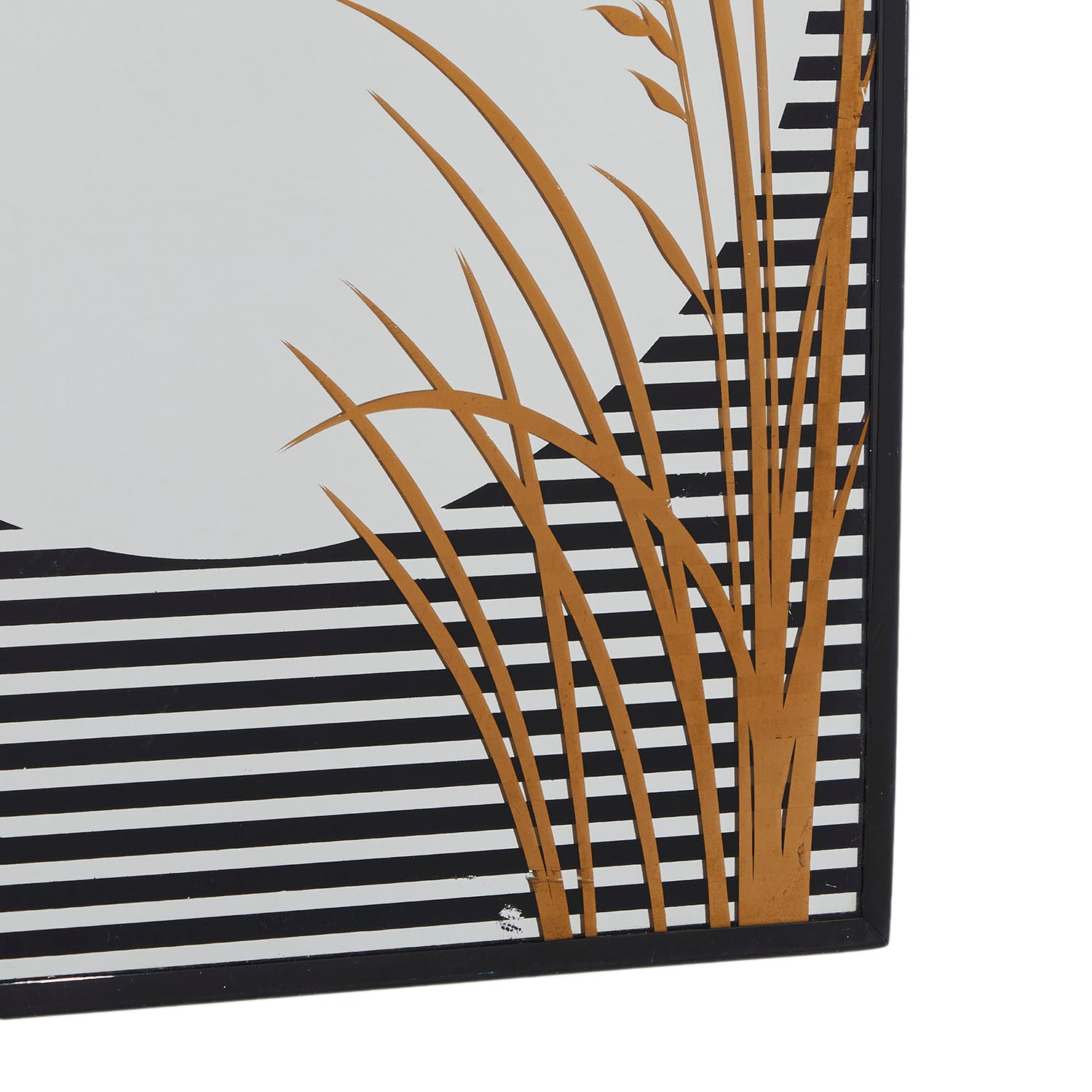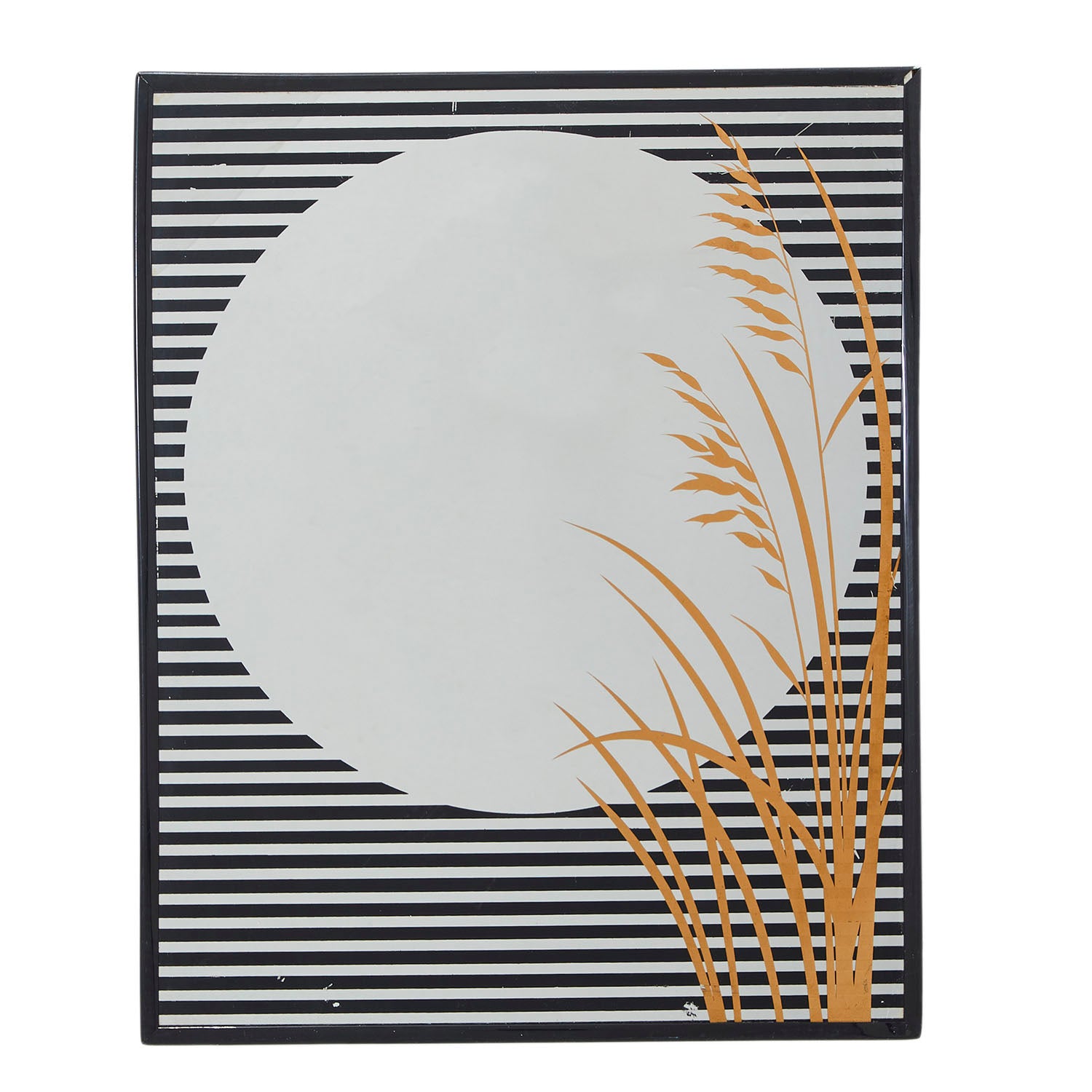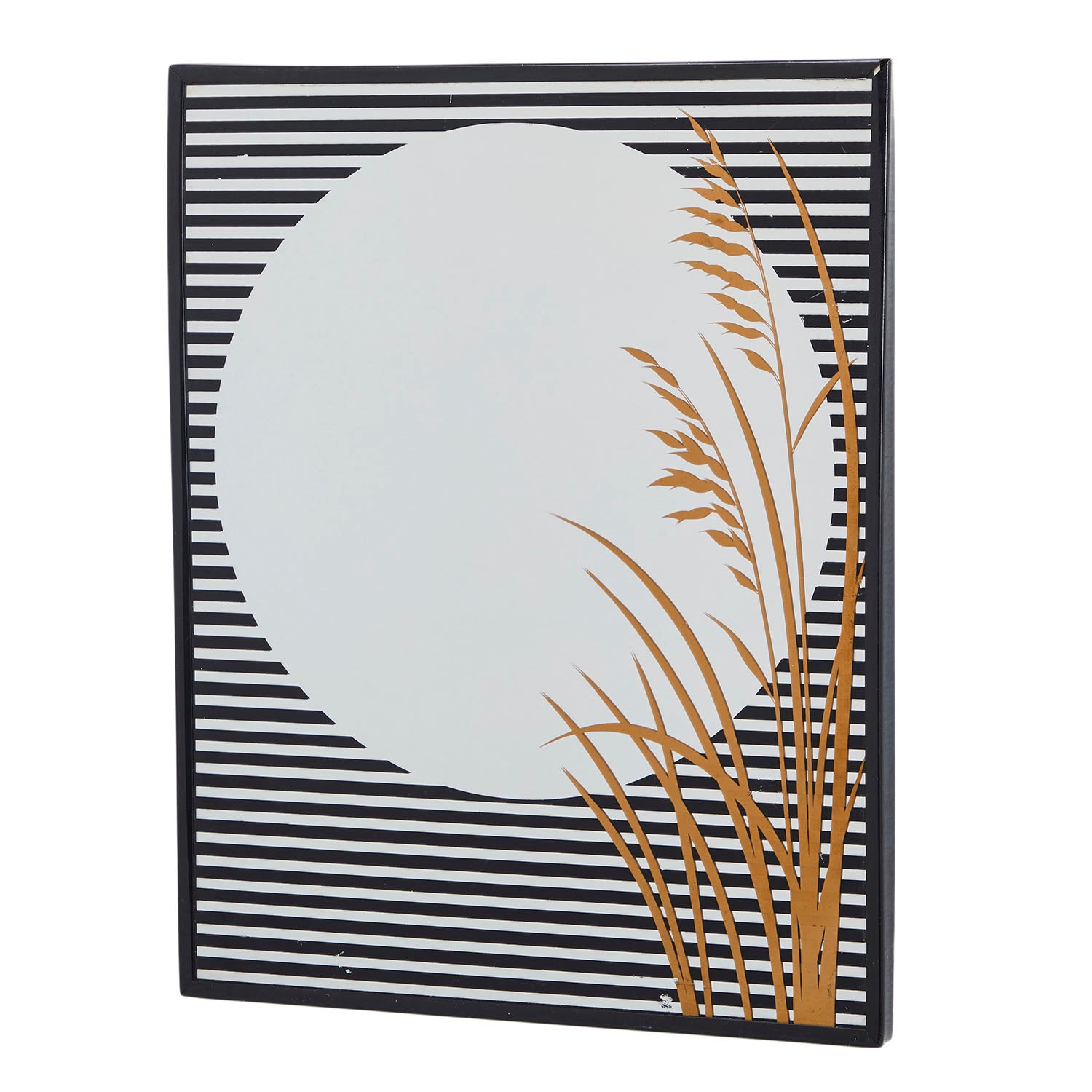 Details: Circular mirror in rectangle frame with thin black stripes and tan wheat design printed on glass Dimensions: 20" H x 16" W x 2"...