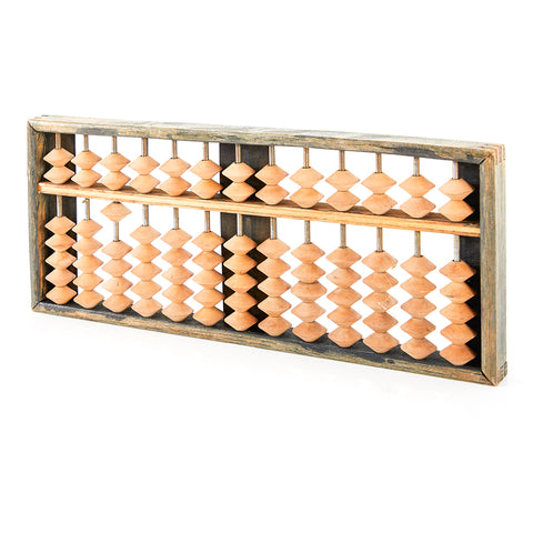 Details: Abacus with reclaimed wooden frame and light wooden beads Dimensions: 5" H x 12" W x 1" D Quantity: 1