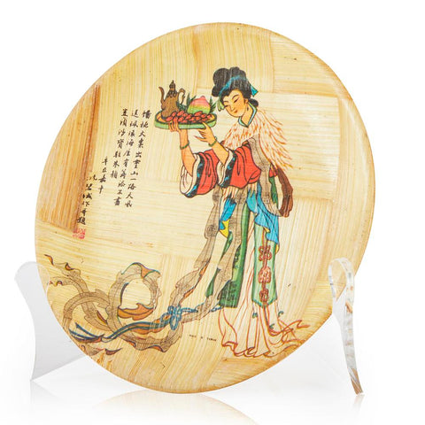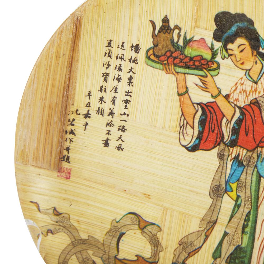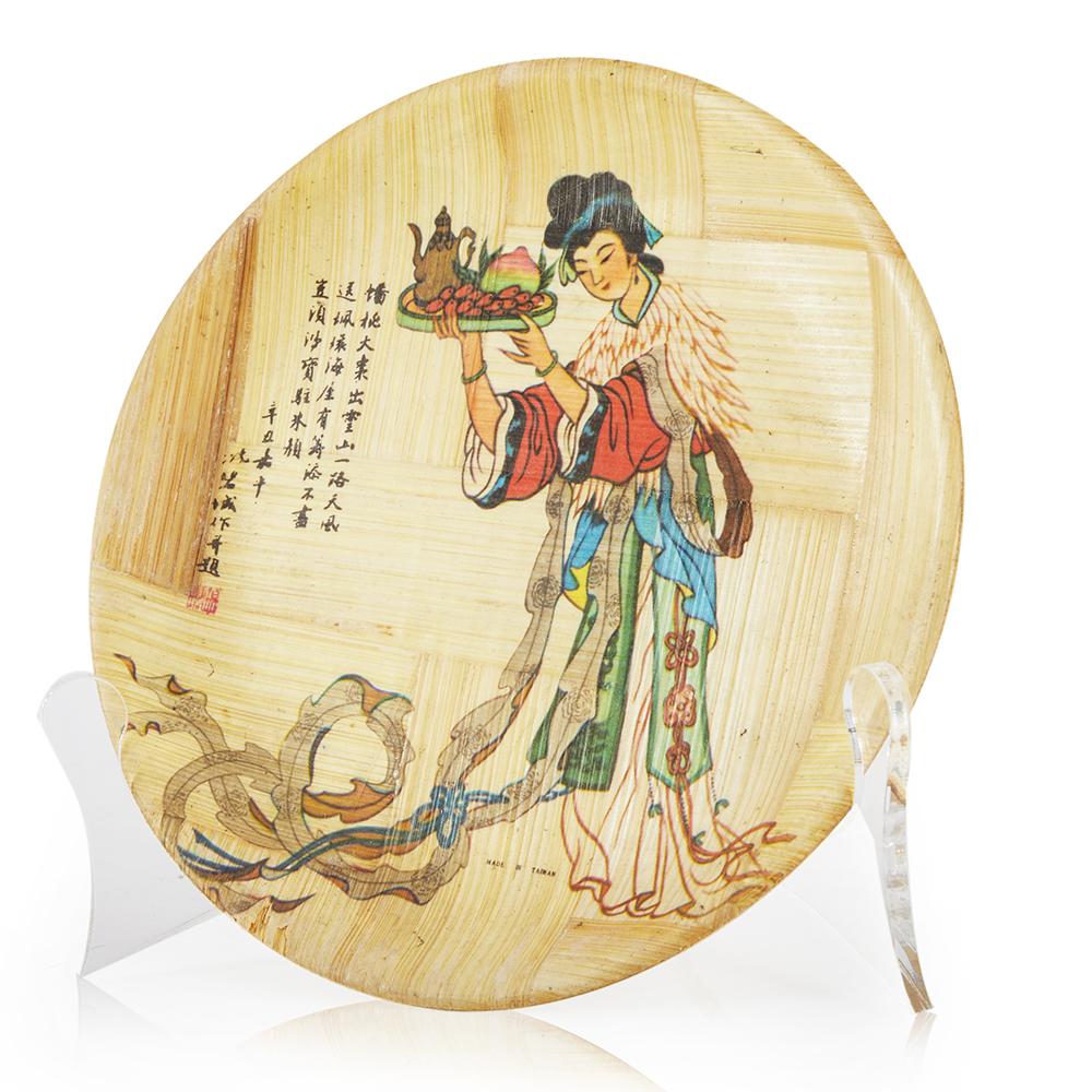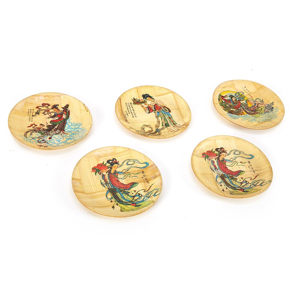Details: Decorative Japanese bamboo plates depicting Geisha in colorful dress Dimensions: 6.5" H x 7" W x 3" D Quantity: 5