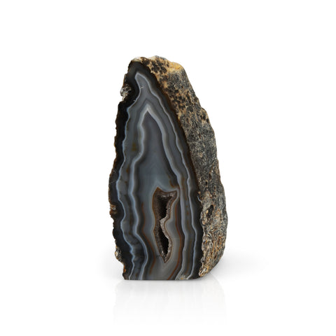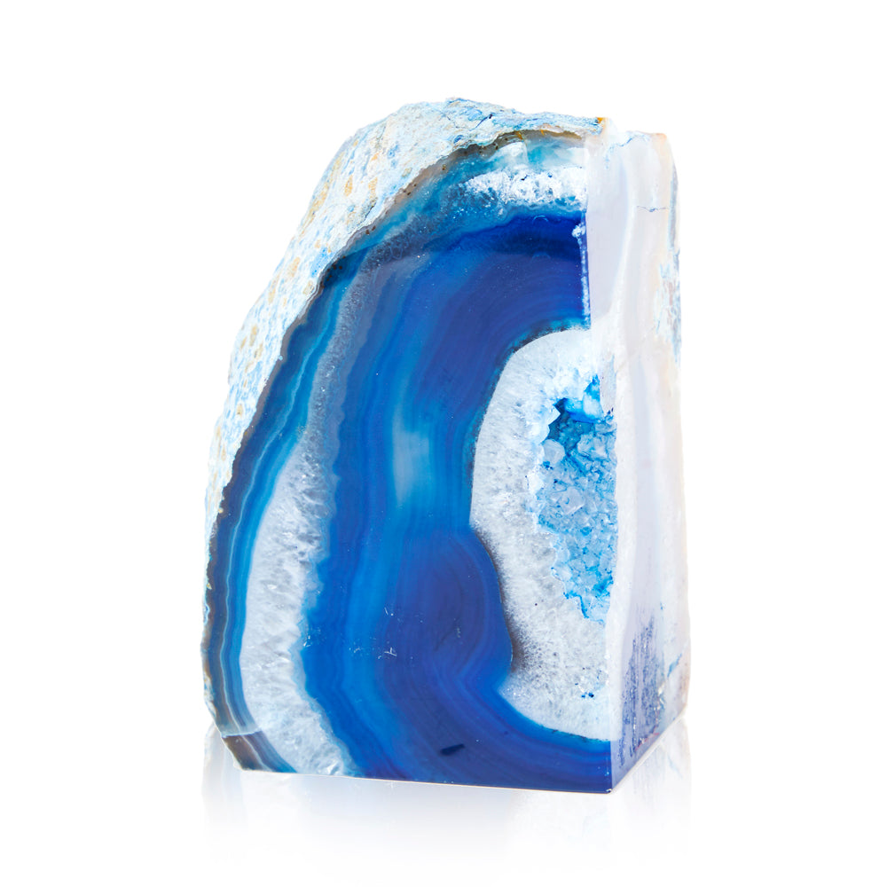 Details: Blue / grey geode cross-section paperweight. Dimensions: 10.5" H x 5" W x 4" D