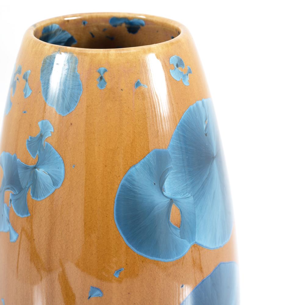 Details: Light blue ceramic vase with white base Dimensions: 3" H x 4" W x 4" D Quantity: 1