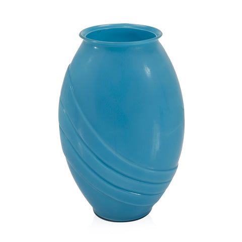 Details: Light blue plastic vase with 80s curve design Dimensions: 16" H x 11" W x 7" D Quantity: 1