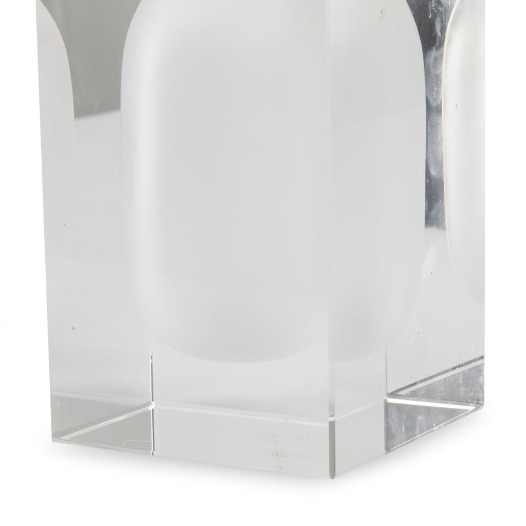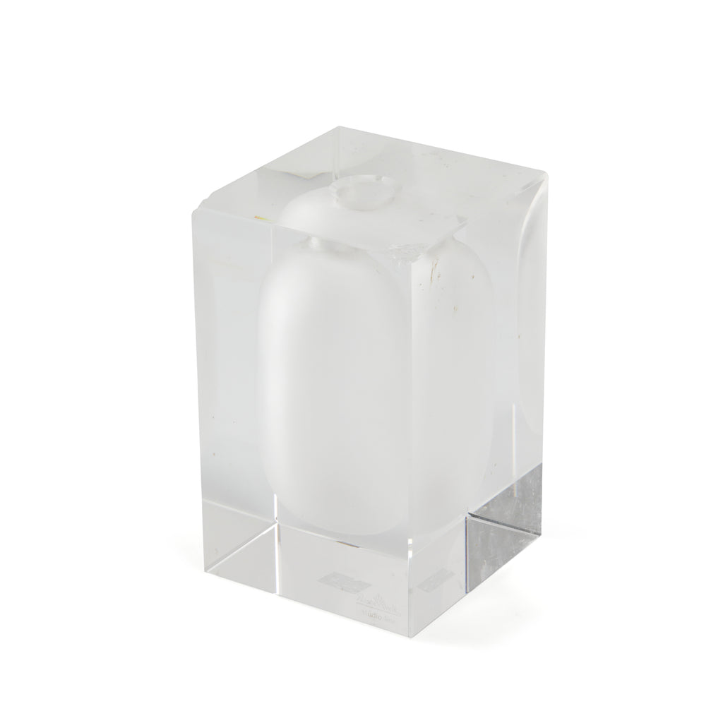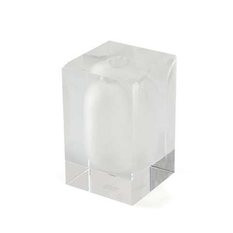 Details: Translucent table sculpture with tapered edges Dimensions: 7.5" H x 3" W x 3" D