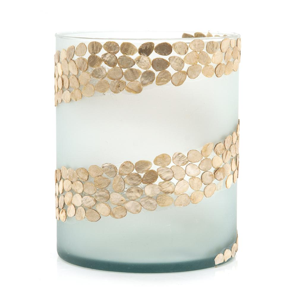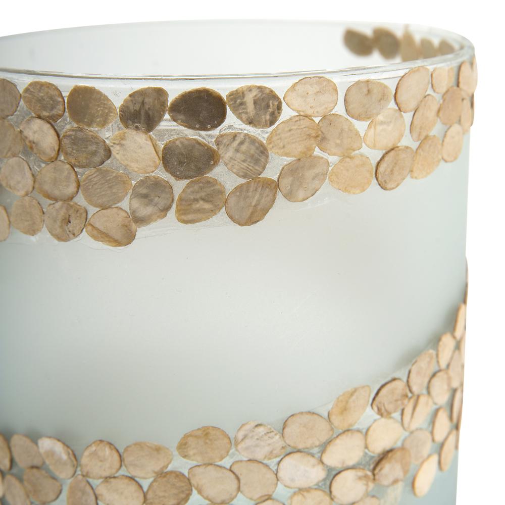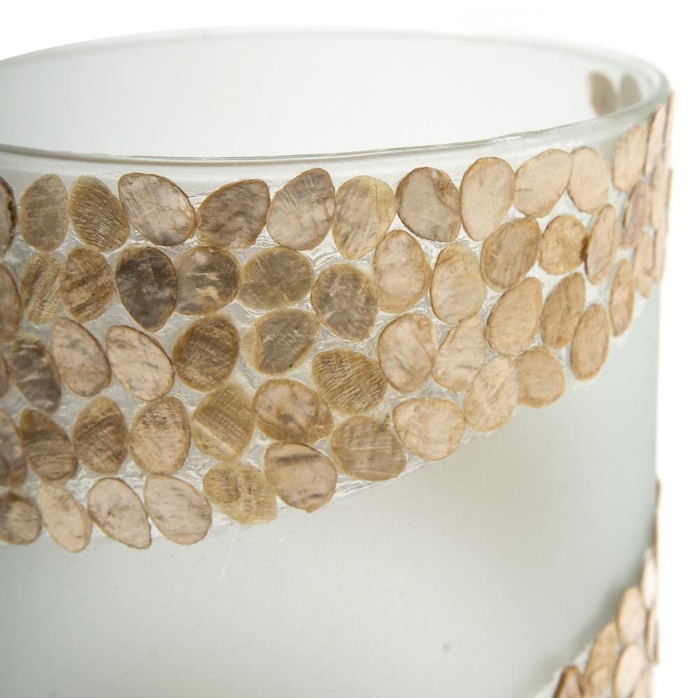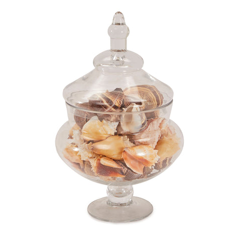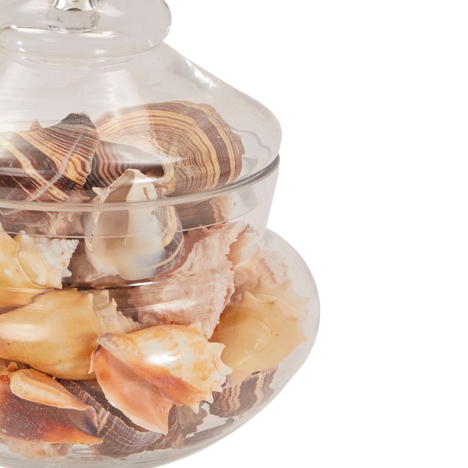 Details: Glass jar holding sea shells Dimensions: 15.5" H x 8.5" W x 8.5" D Quantity: 1