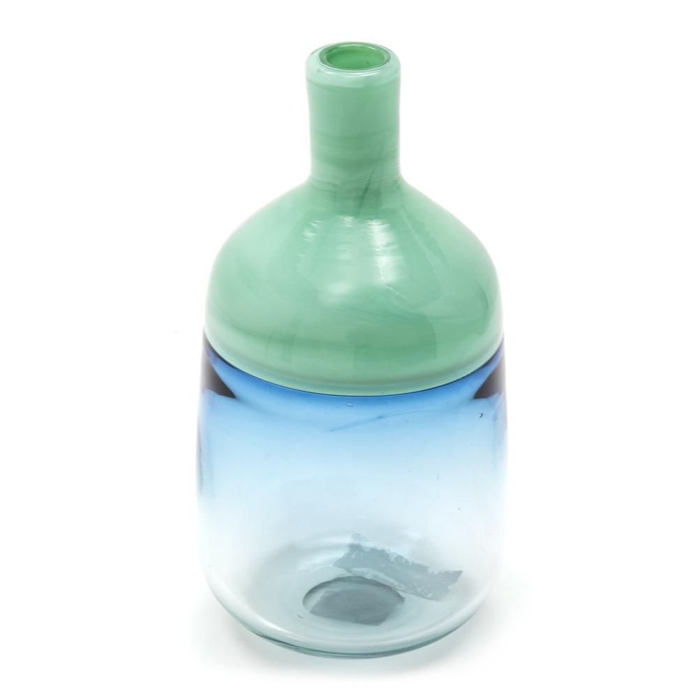 Details: Clear Glass, Bottle, Faux Plant, Vase, BFADimensions: 12" W x 4" D