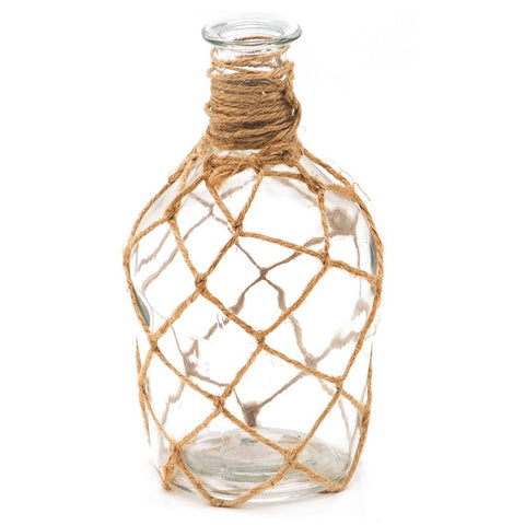 Details: Glass bulbous bottle with twine outer wrapping Dimensions: 9" H x 5"W x 5" L