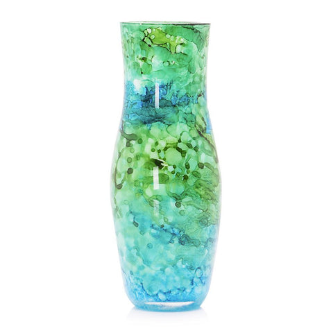 Details: Vase with paint drip / watercolor aesthetic. Dimensions: 10" H x 5" W x 5" D