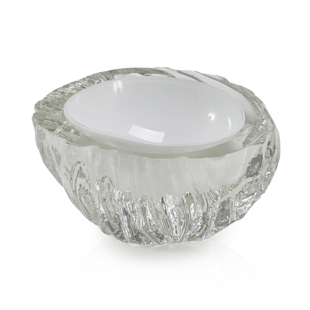 Details: Small glass vase with organic indented designs Dimensions: 5" H x 3.5" W x 3.5" D Quantity: 1