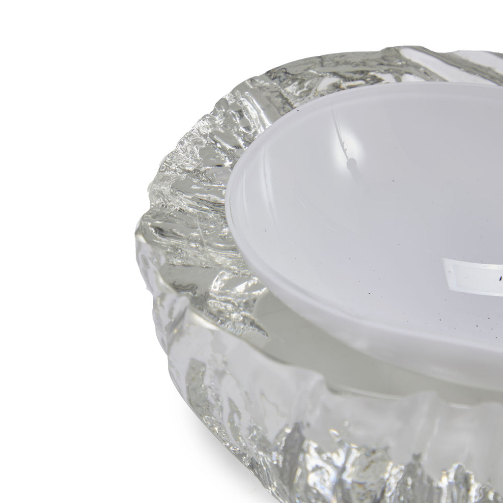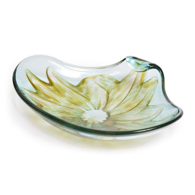 Details: Glass ashtray with painted shell pattern Dimensions: 3" H X 5" W X 5" D Quantity: 1