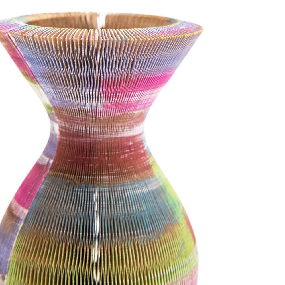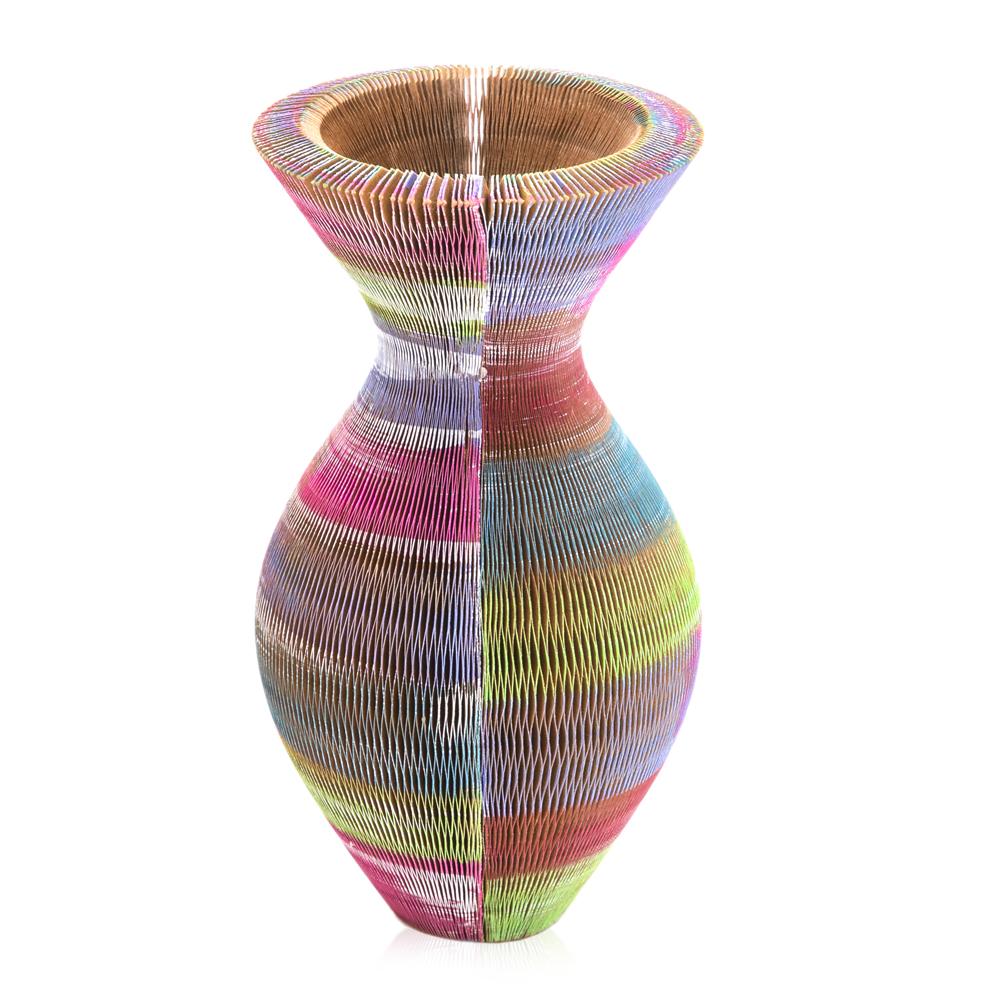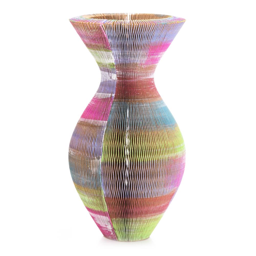 Details: Multi-colored accordion folded paper vase. Dimensions: 8" x 4" x 4"