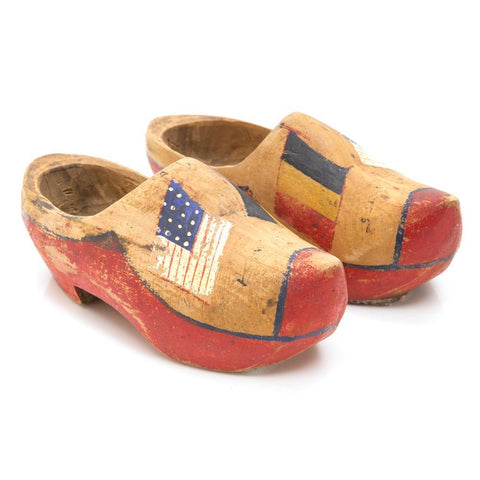 Details: Red, blue, and grey painted wooden shakers Dimensions: 7.5" H x 2" W x 2" D