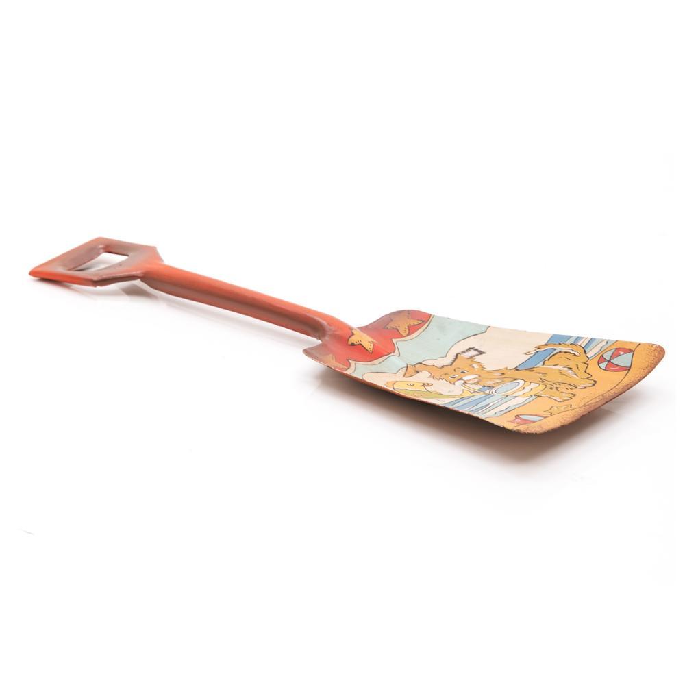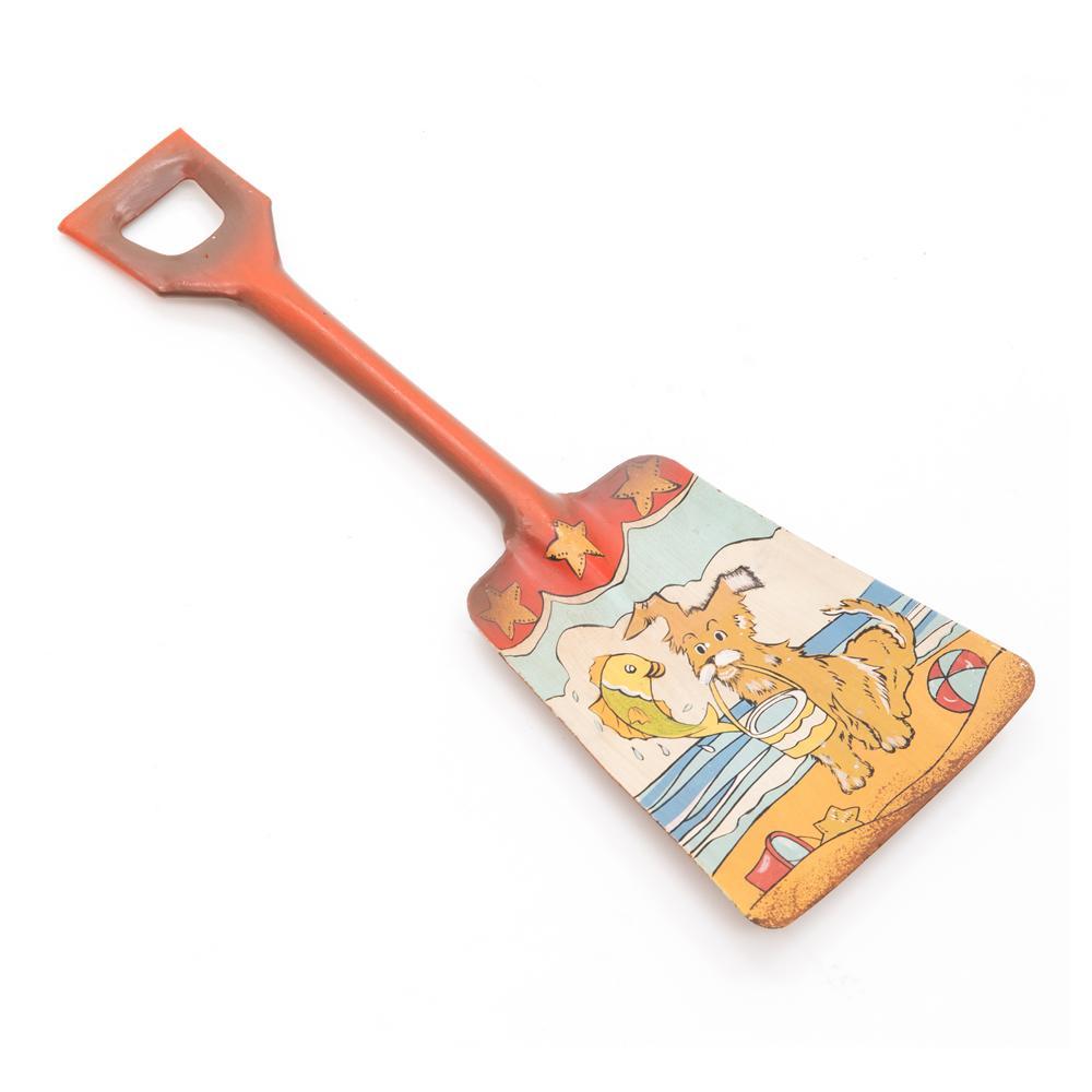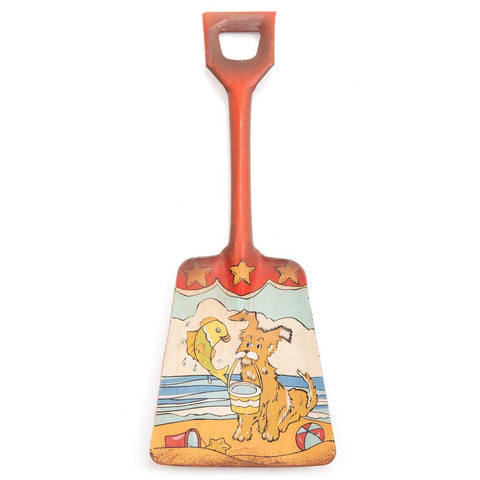 Details: Vintage painted metal shovel with a dog and fish on the beach. Dimensions: 12" H x 4.5" W x 0" D