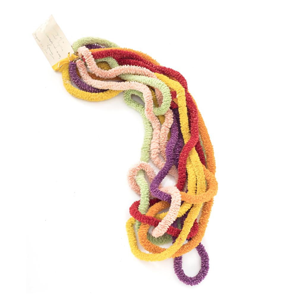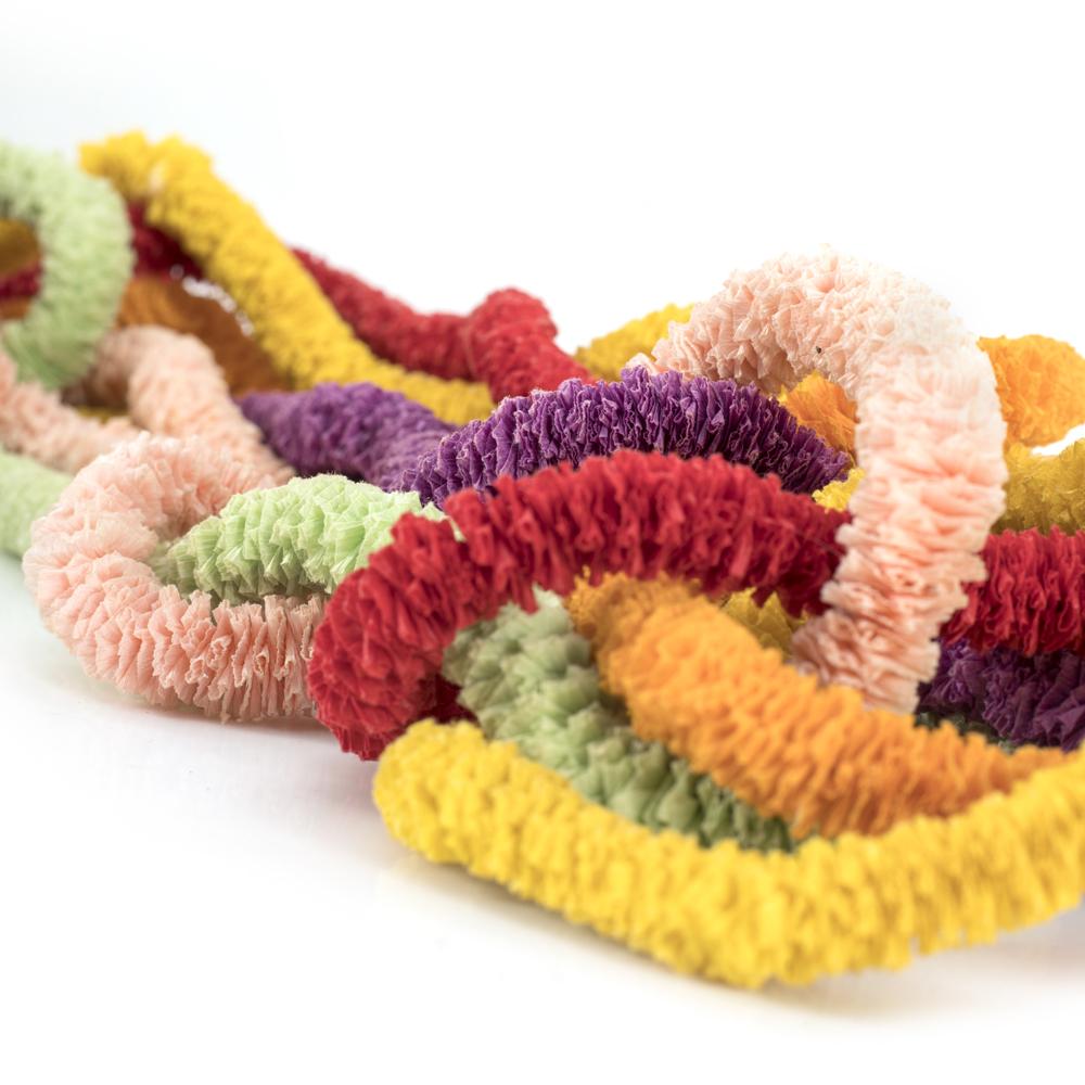 Description : Vintage paper Hawaiian lei made from multicolored paper. Dimensions: 18" H x 4"W