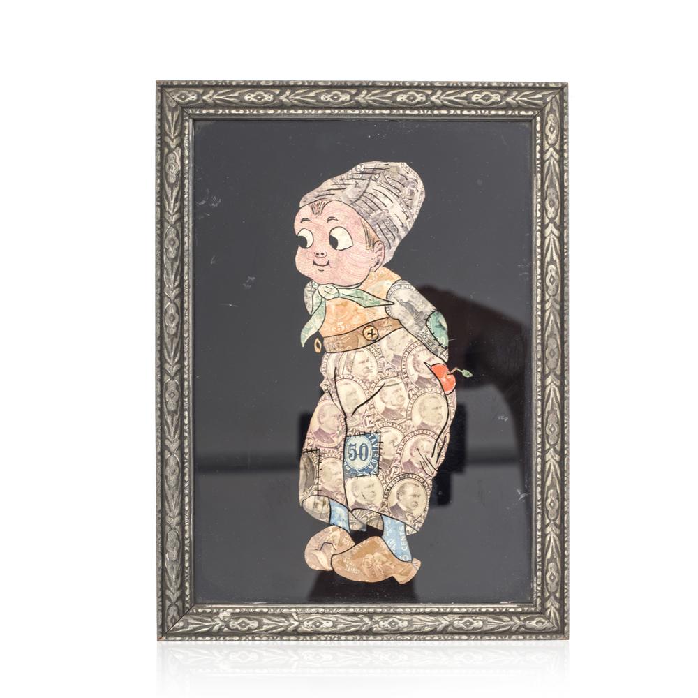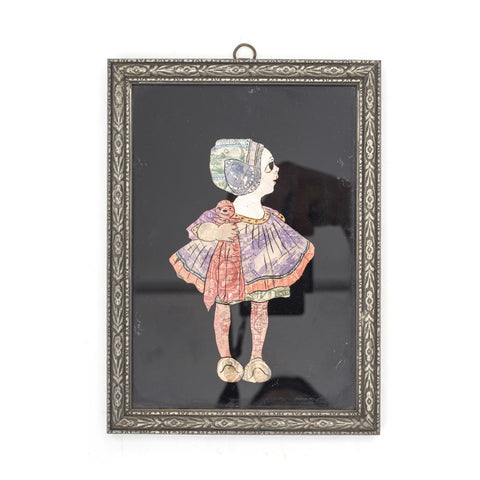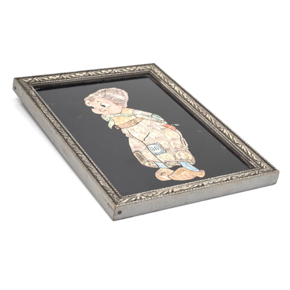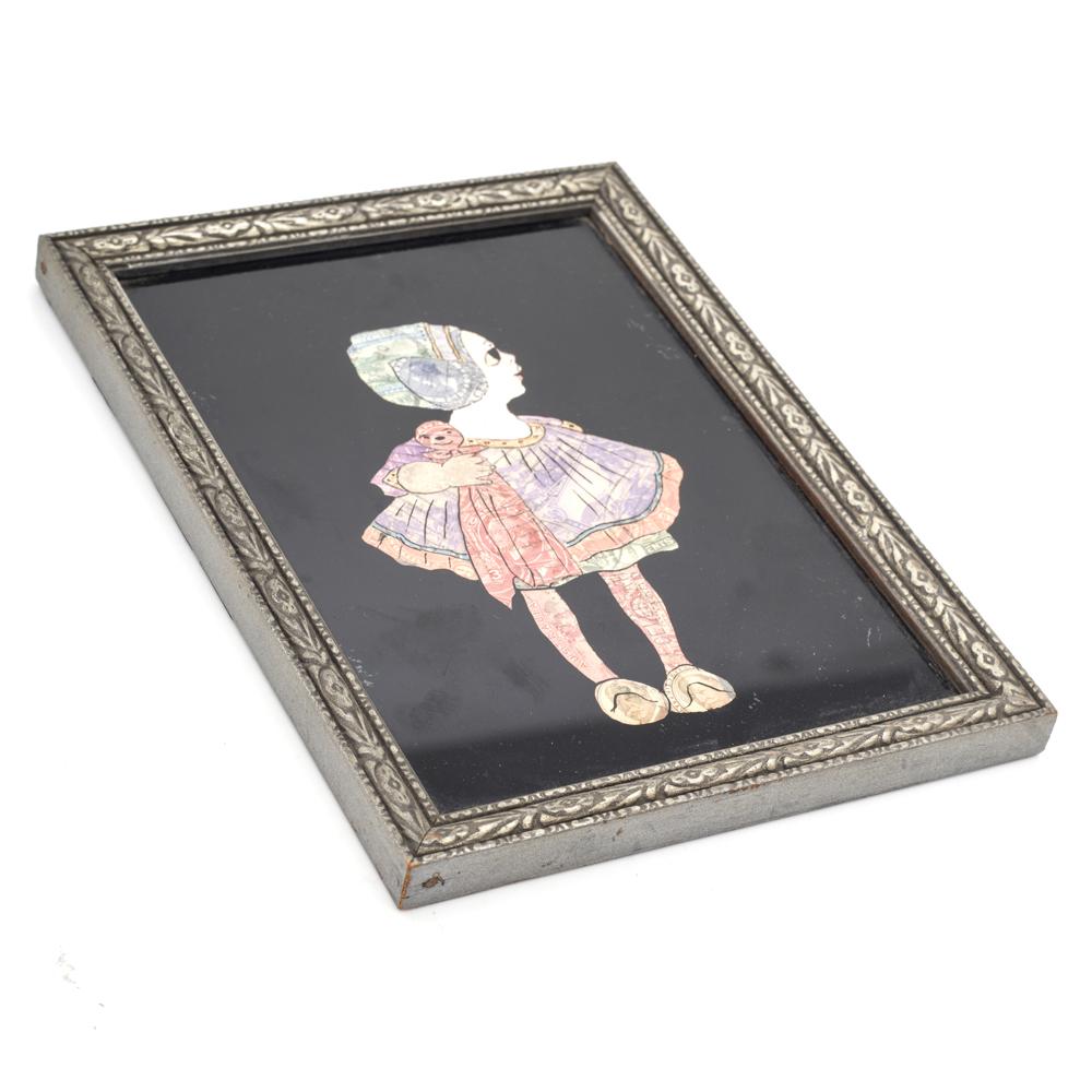 Details: Framed vintage stamp artwork of a small child. Dimensions: 8" H x 6" W