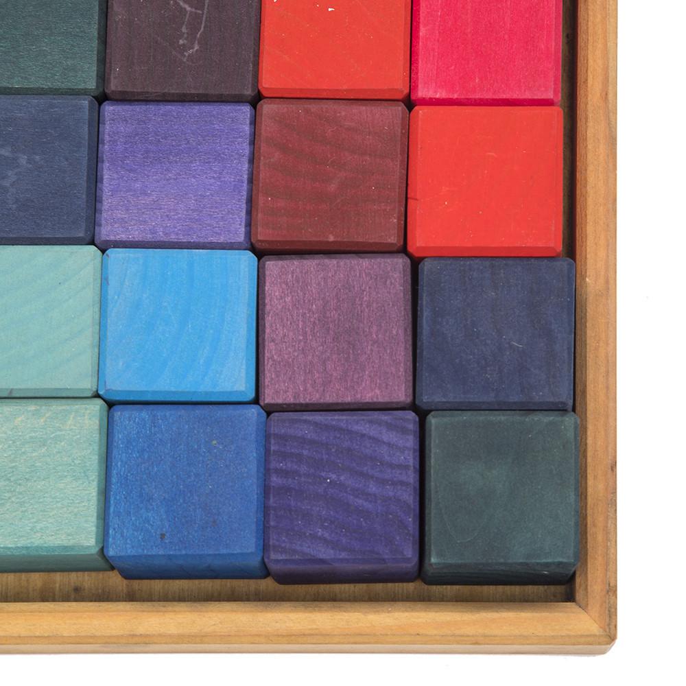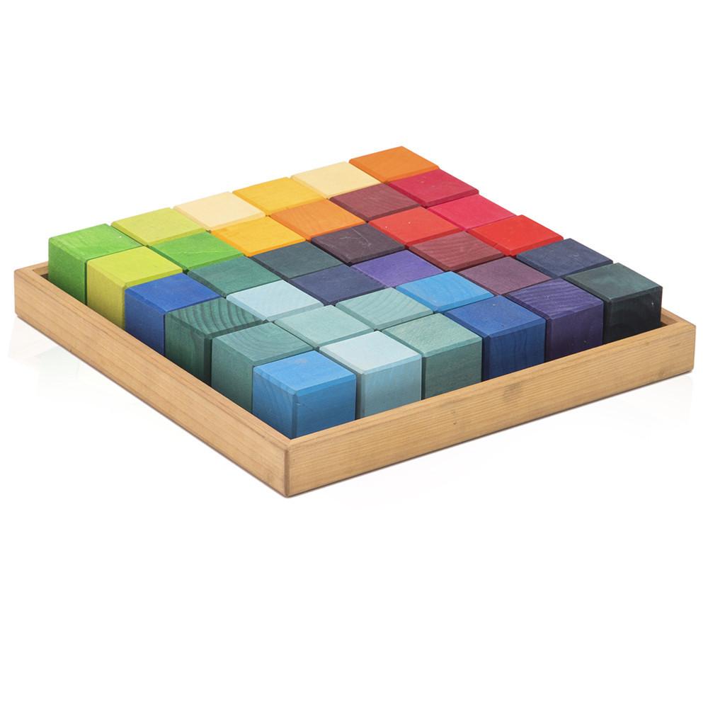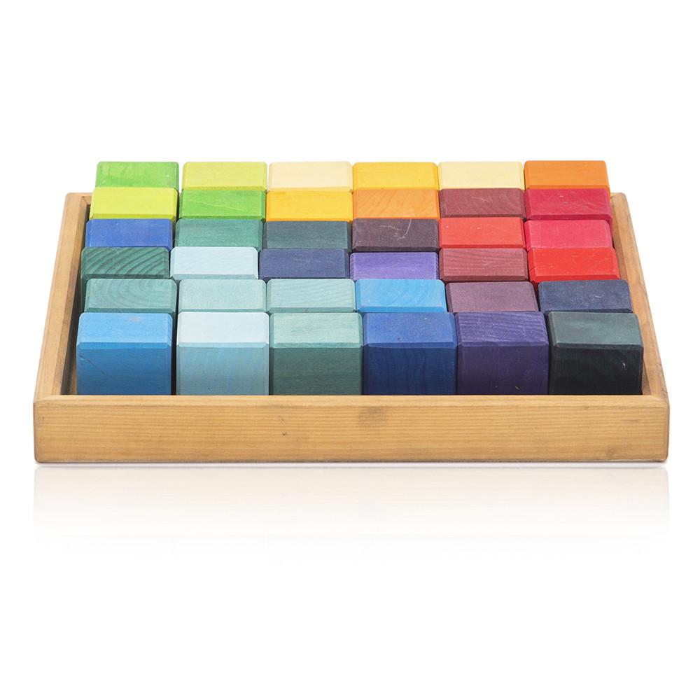 Details: Multicolored painted wood block set. Dimensions: 2" H x 10.5" W x 10.5" D