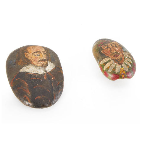 Details: Painted stones with Shakespearean illustrations Dimensions: 1.25" H x 2" W x 2" D Quantity: 2