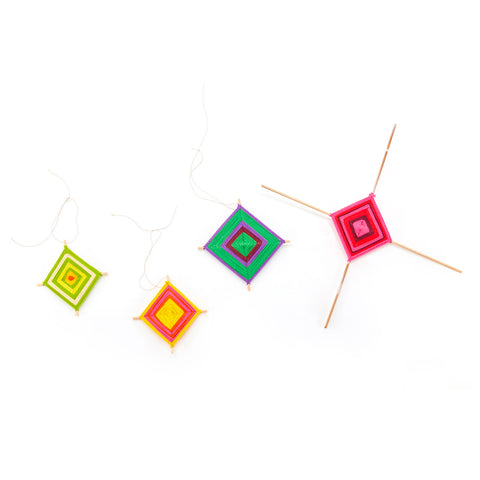 Details: Multicolor set of patterned God's eye decorations Dimensions: 13" H x 13" W x 13" D Quantity: 4