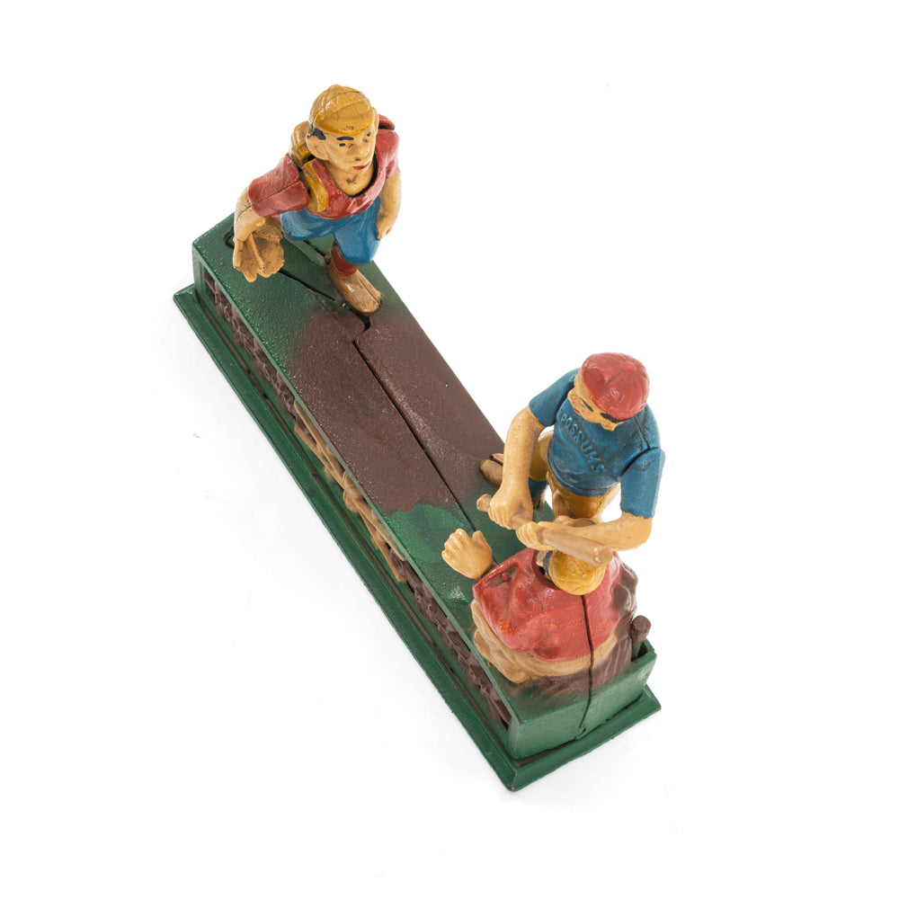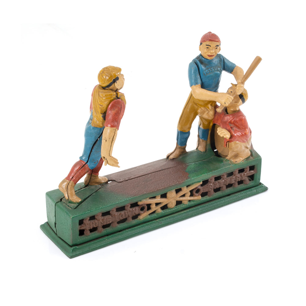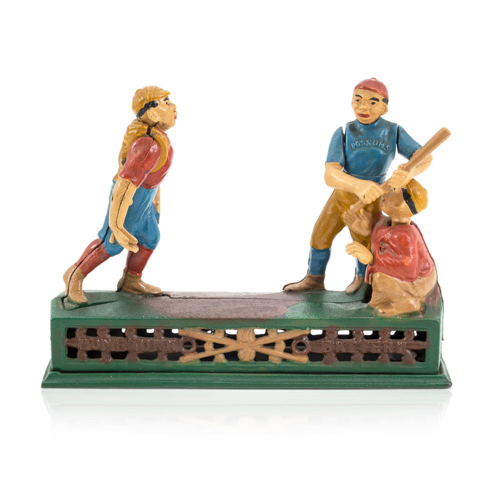 Details: Metal baseball players vintage coin game Dimensions: 8" H x 9" W x 3" D Quantity: 1