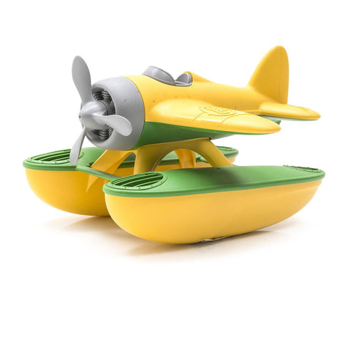 Details: Yellow and green plastic water airplane toy Dimensions: 5" H x 9" W x 6.5" D