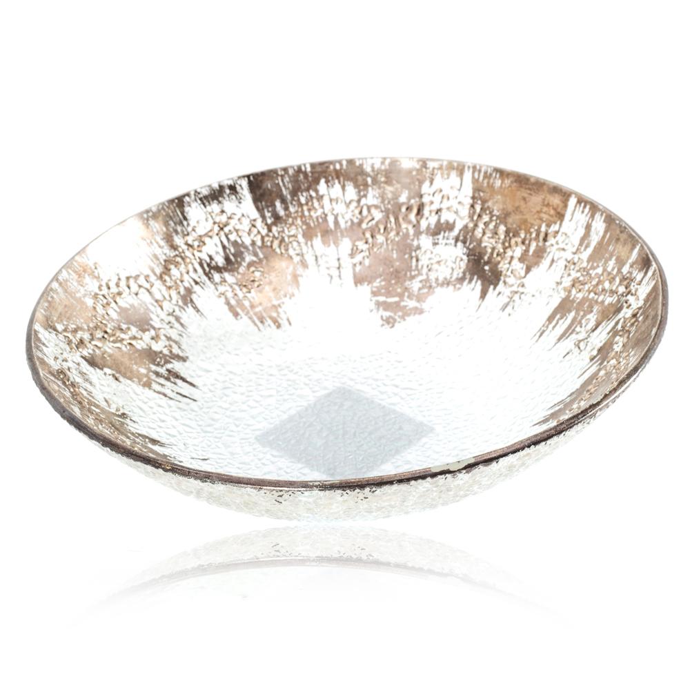 Details: Glass bowl with gilt gold leaf abstract edges.