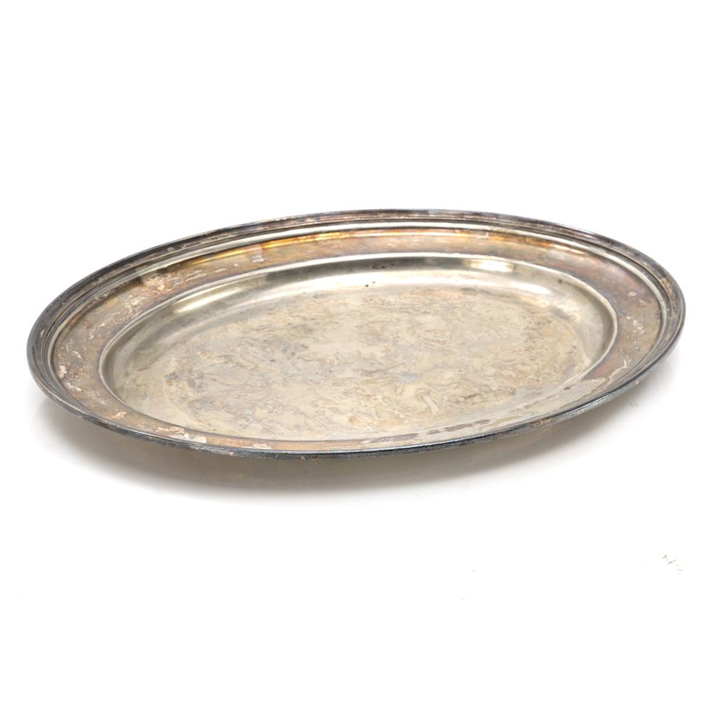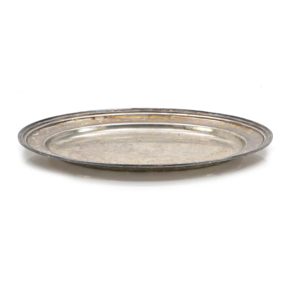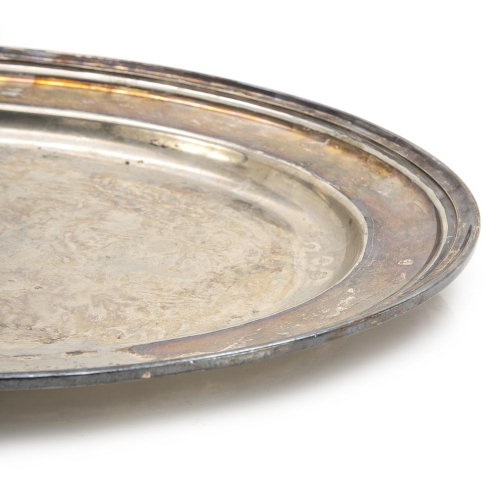 Details: Metal serving tray with engraved detail.