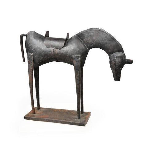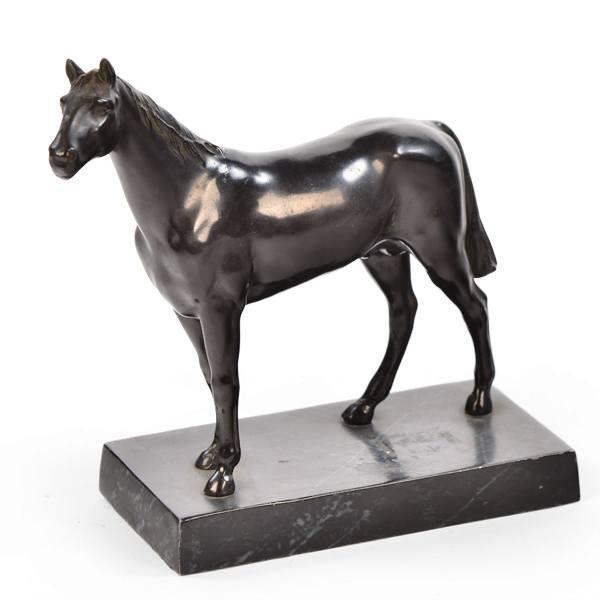 Details: Black metal horse on a marble baseDimensions: 8" H x 3.5" W x 8" D