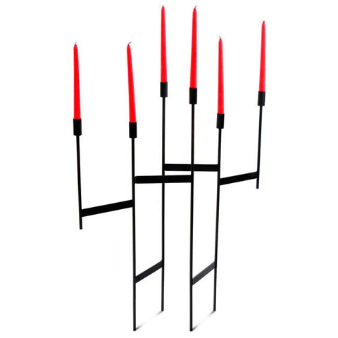 Details: Standing Black Metal, Six Candle HolderDimensions: 32" H X 27" W X 8" D
