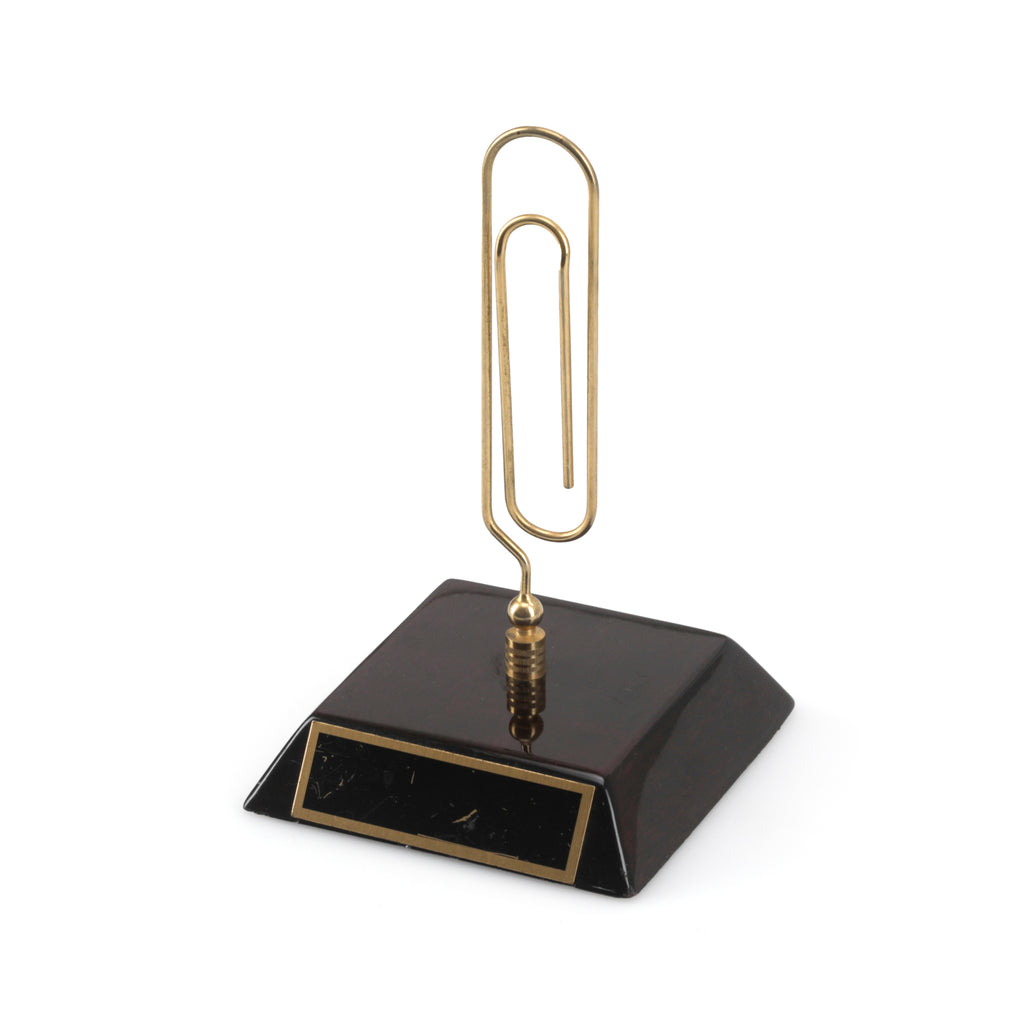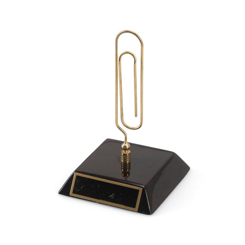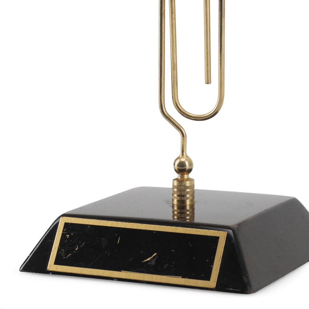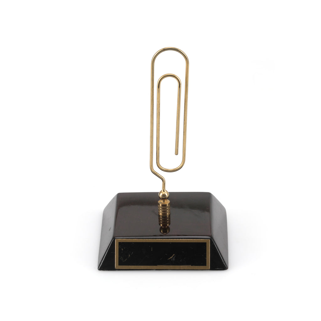 Details: Golden paperclip award on a black base. Dimensions: 6" H x 4" W x 4" D