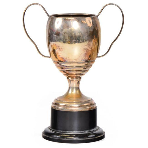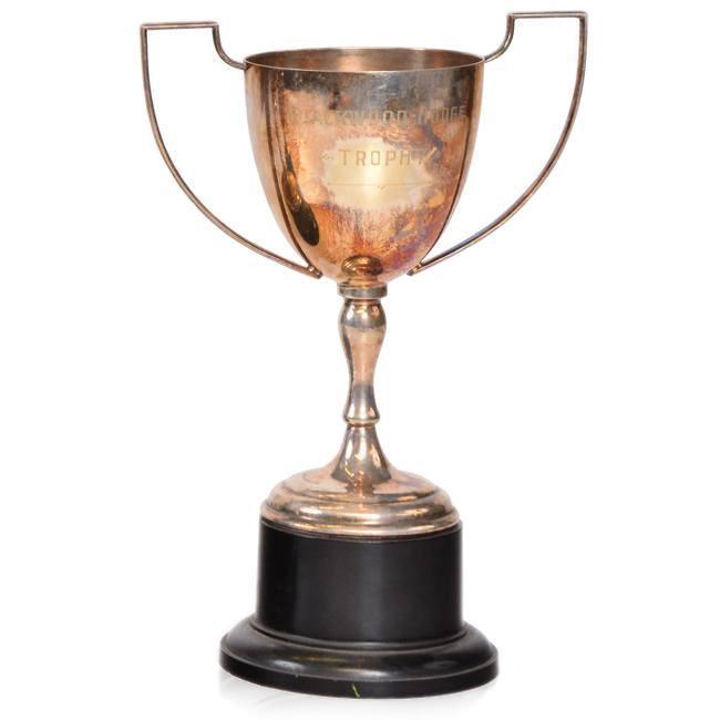Details: Silver trophy cup with black base and list of names Dimensions: 11.5" H