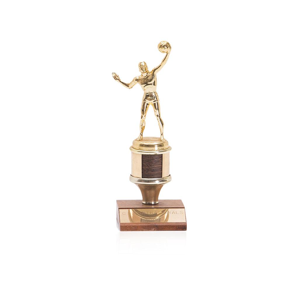 Details: Gold trophy with wood base and gold plaque Dimensions: 11" H x 6.5" W x 6" D Quantity: 1