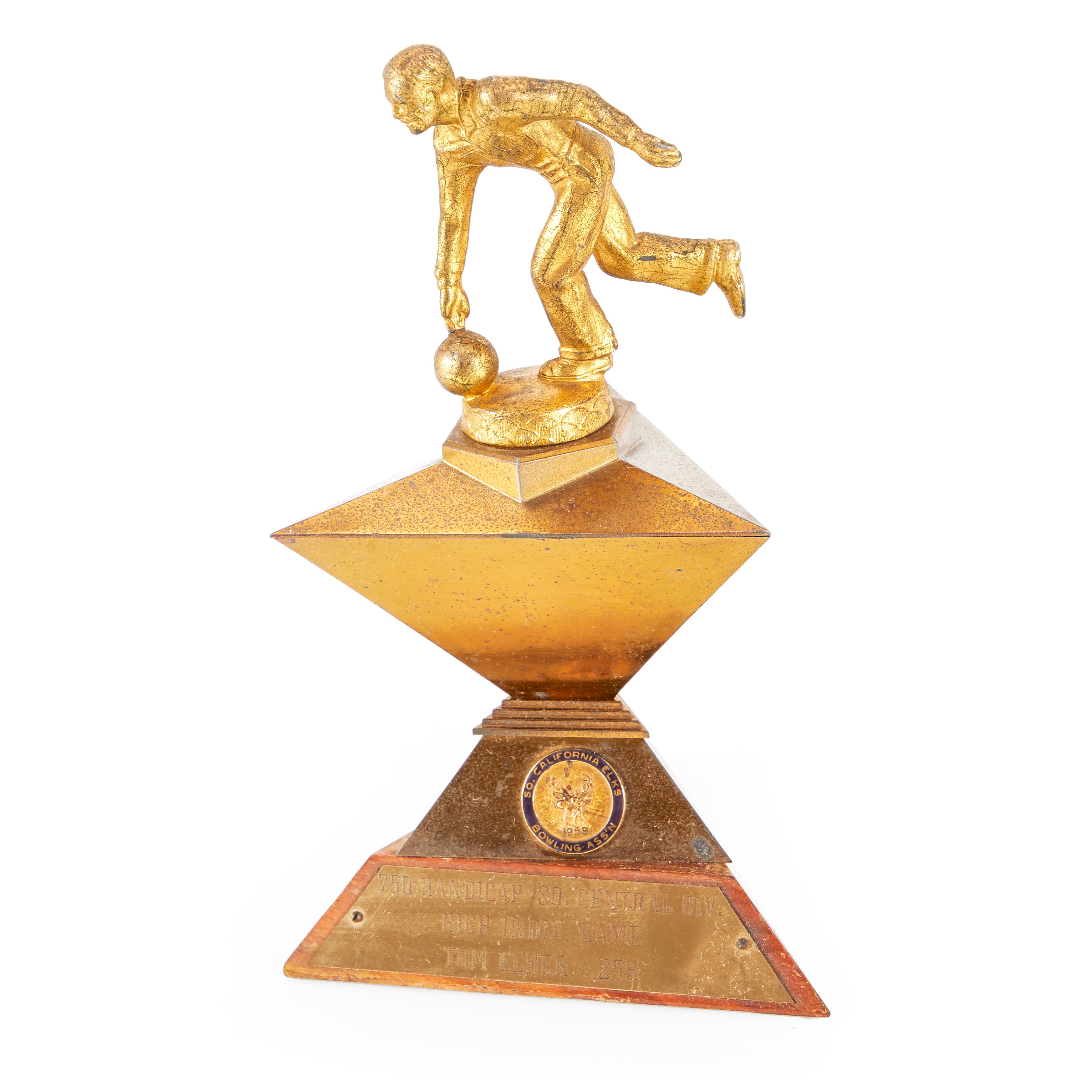 Details: Gold trophy with wood base and gold plaque Dimensions: 11" H x 6.5" W x 6" D Quantity: 1