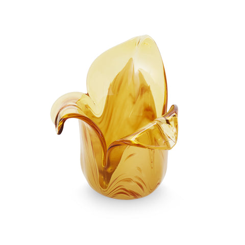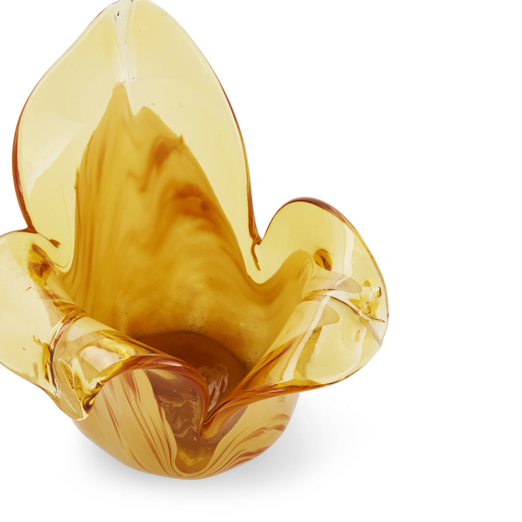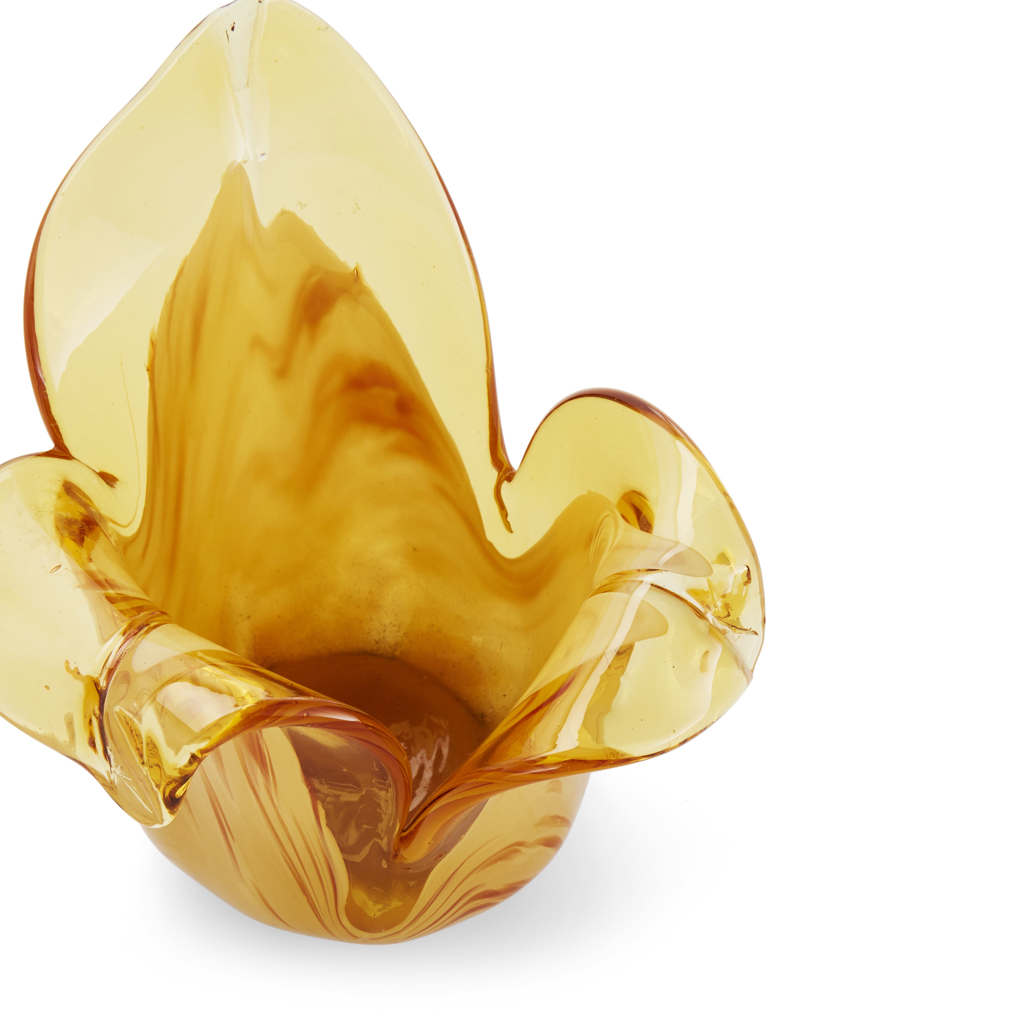 Details: Blown glass vase with an amber tone *One of the tips has been chipped due to damage from a previous job. Price is, as...