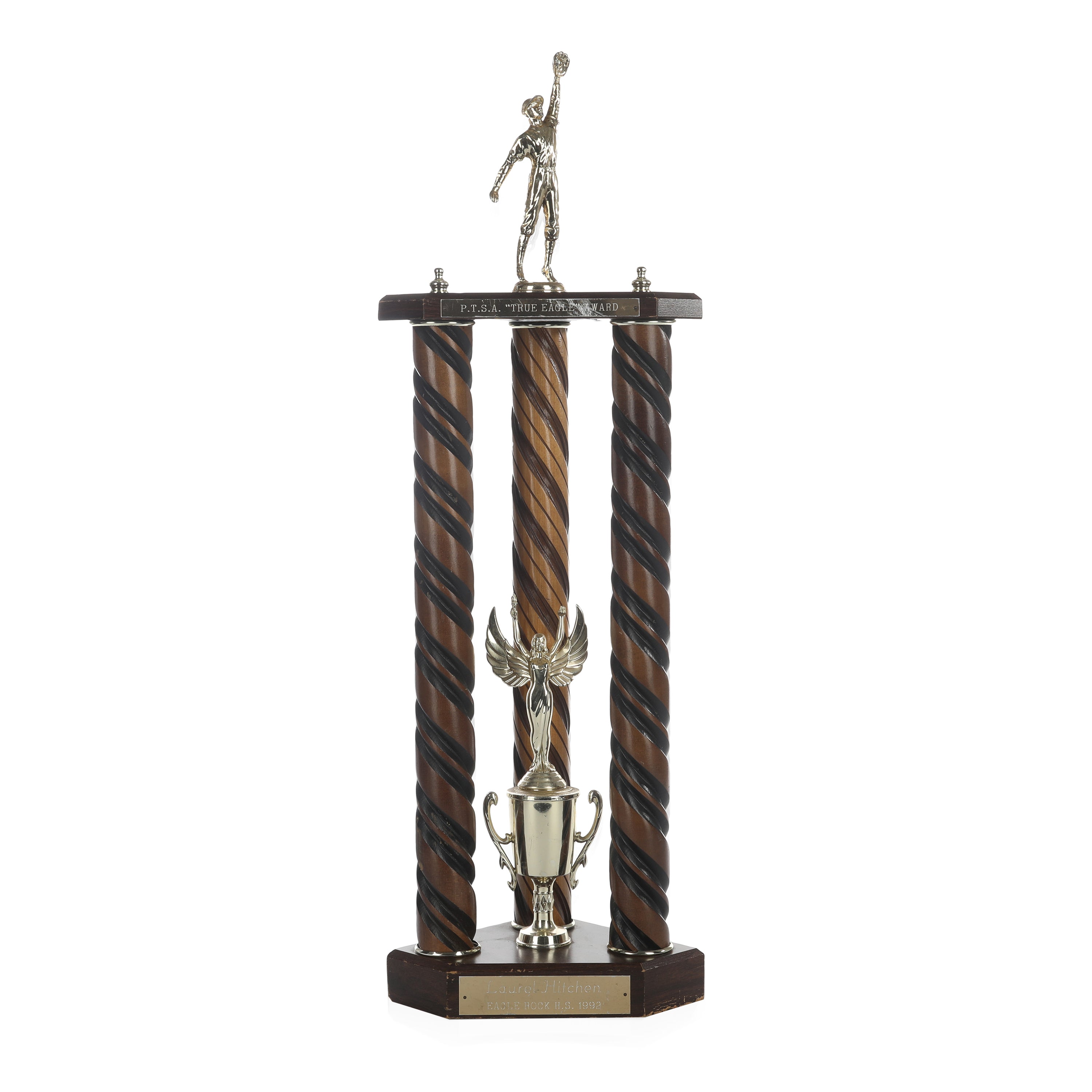 Details: Tall brown and black baseball trophy from Eagle Rock H.S. Dimensions: 27" H x 9" W x 7" D