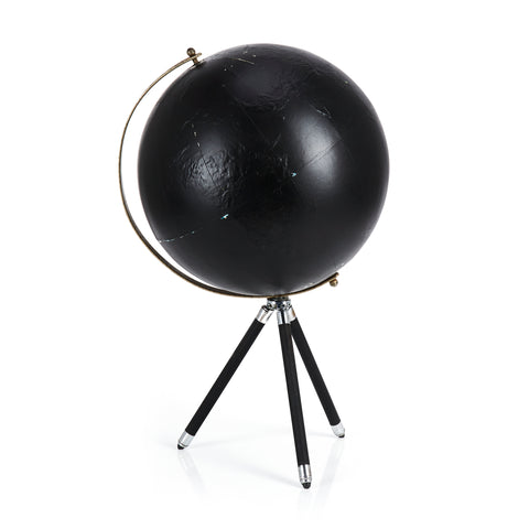 Details: Black globe on metal tripod stand with bronze holder Dimensions: 20" H X 12" Diamater