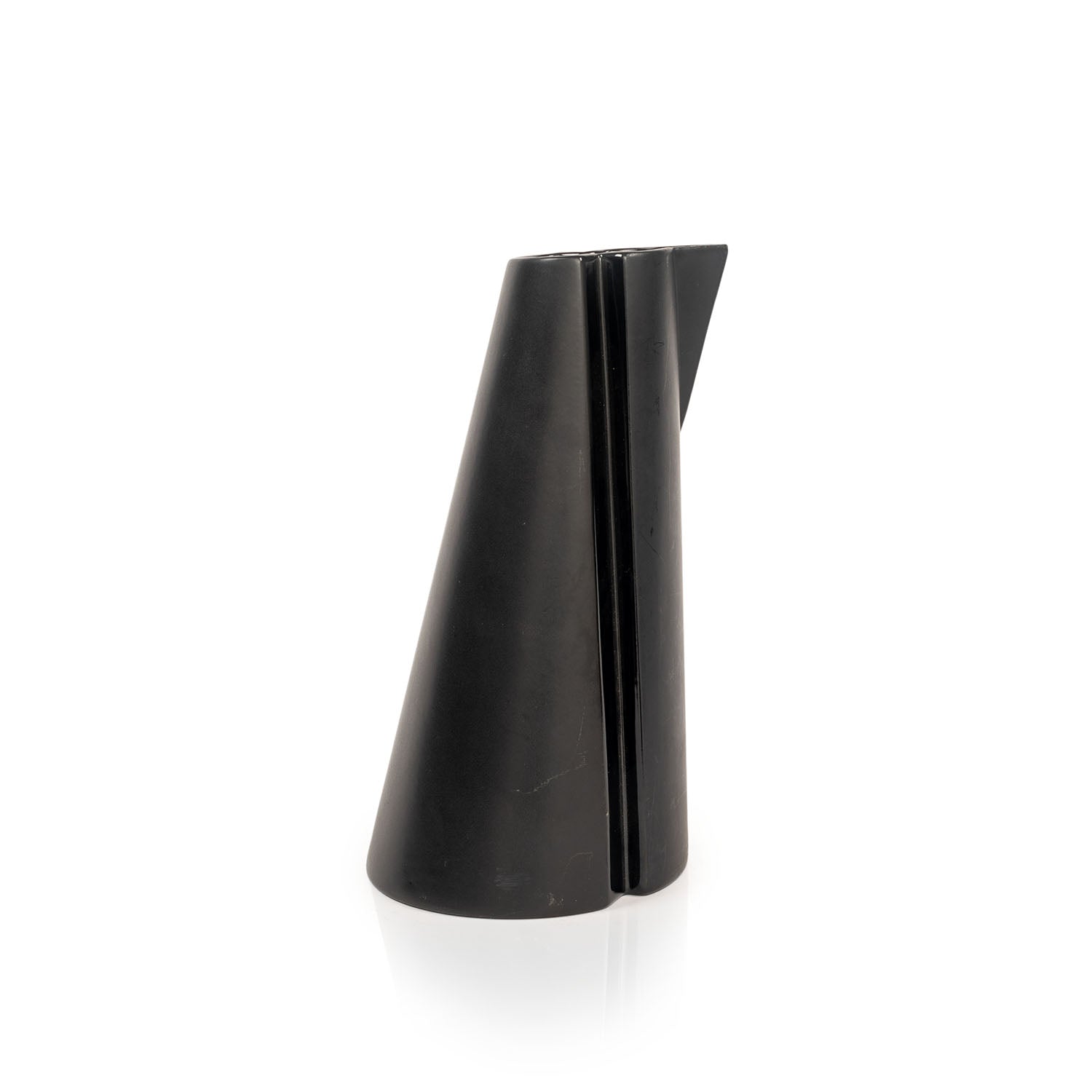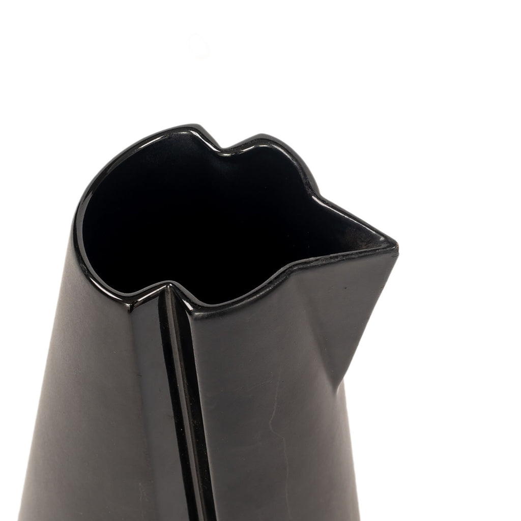 Details: Tall geometric black ceramic pitcher with indents and triangular spout Dimensions: 11" H x 3" W x 4" D Quantity: 1