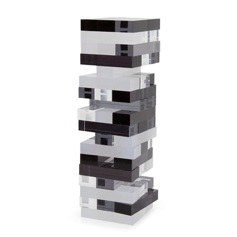 Details: Black and lucite contemporary Jenga set Dimensions: 10" H x 3.25" W x 3.25" D
