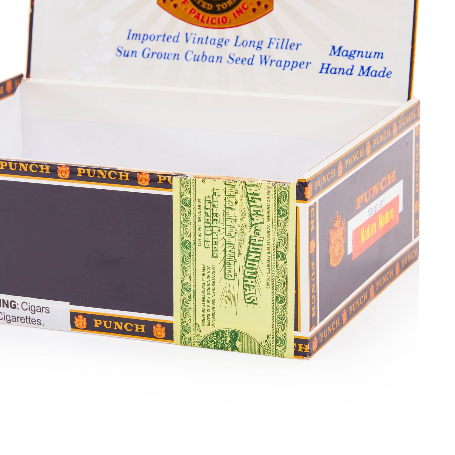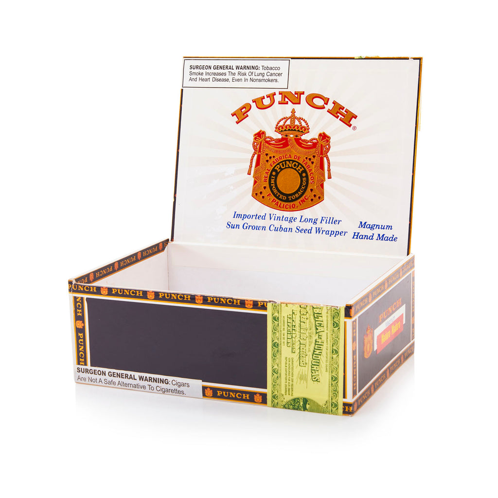 Details: Black 'Punch' Magnum cigar box Dimensions: 3" H x 8" W x 6" D Quantity: 1