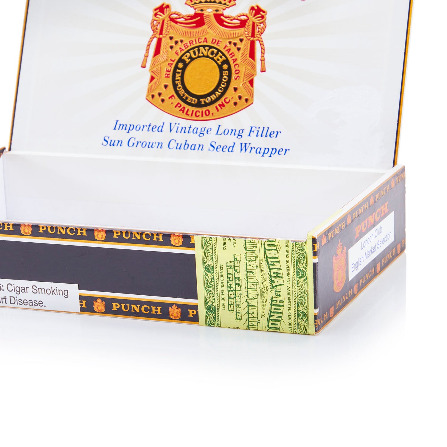 Details: Black 'Punch' London Club cigar box Dimensions: 2" H x 8" W x 5.5" D Quantity: 1