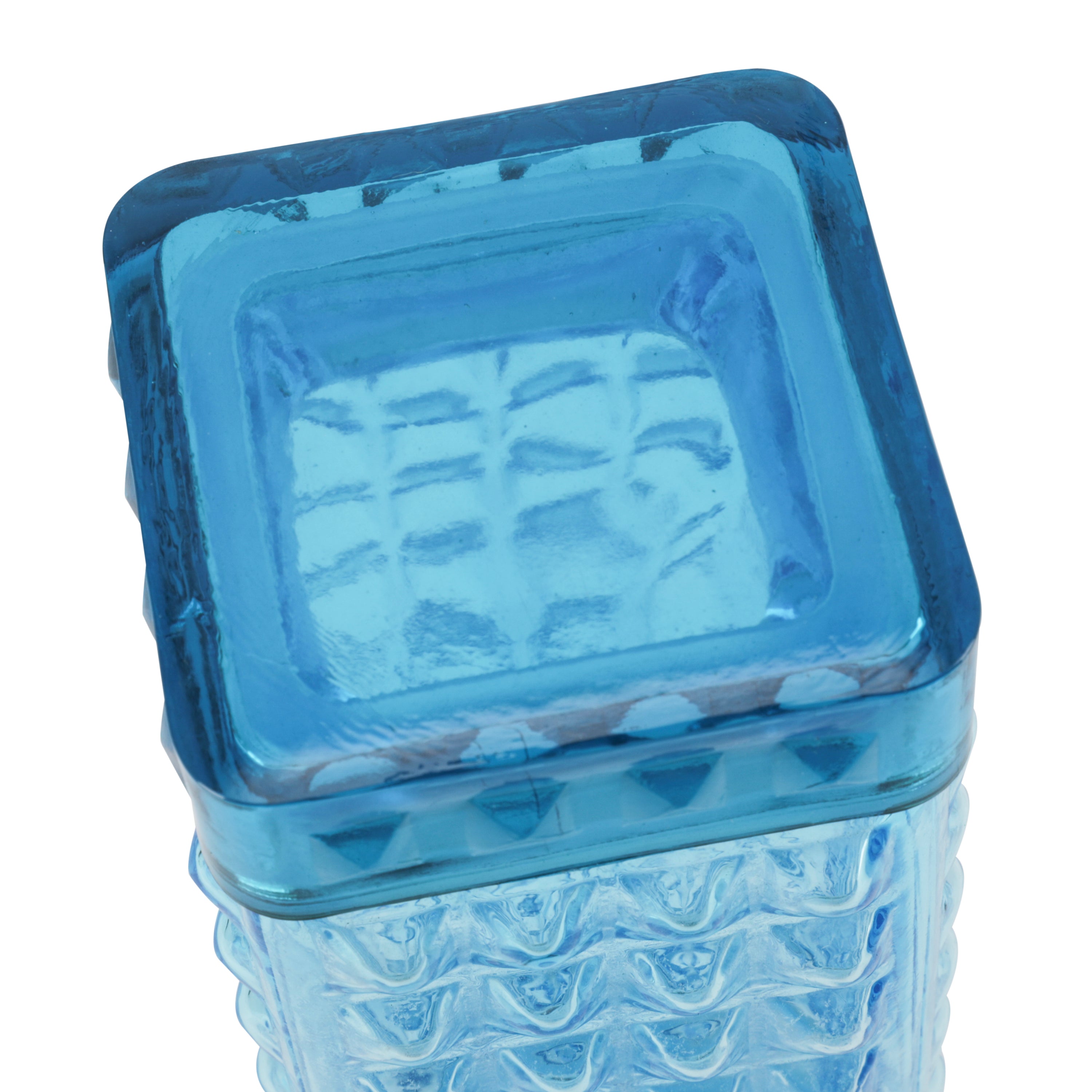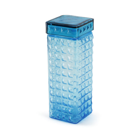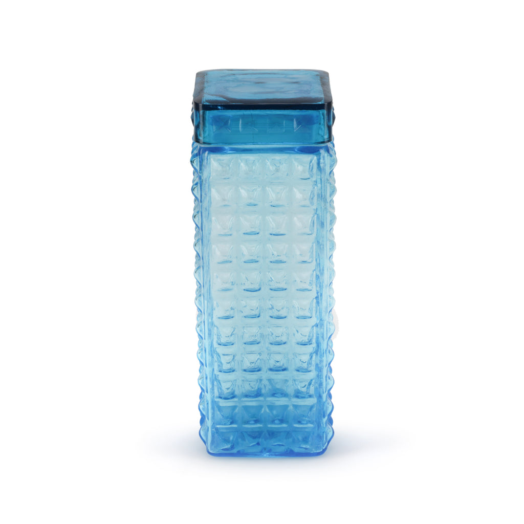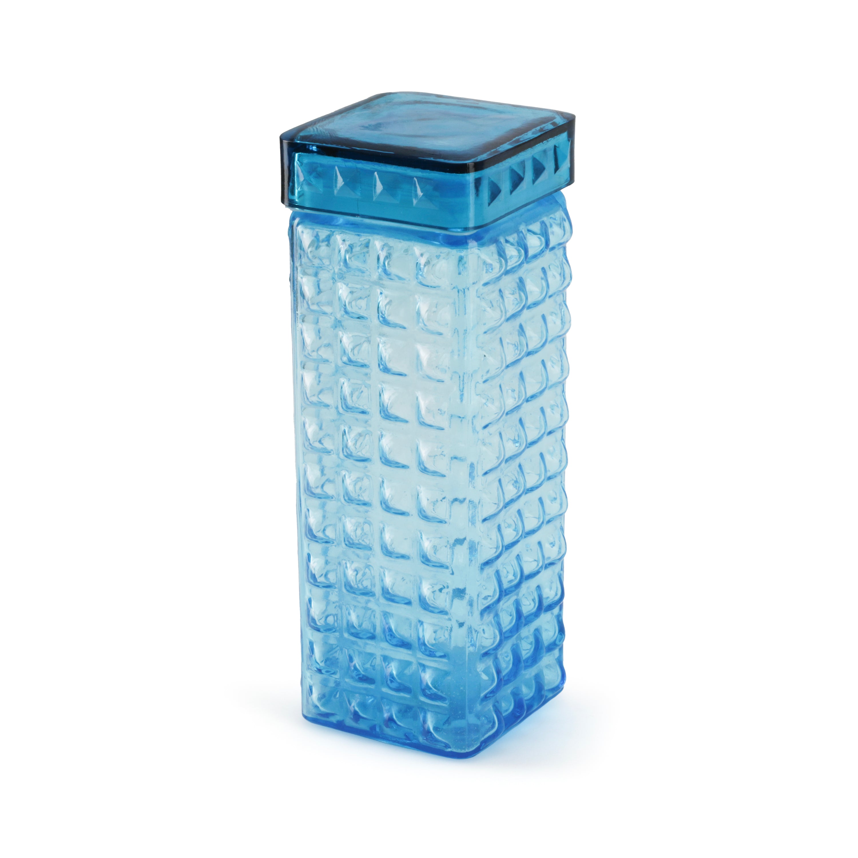 Details: Rectangular jar with textured glass exterior Dimensions: 10" H x 3" W x 3" D