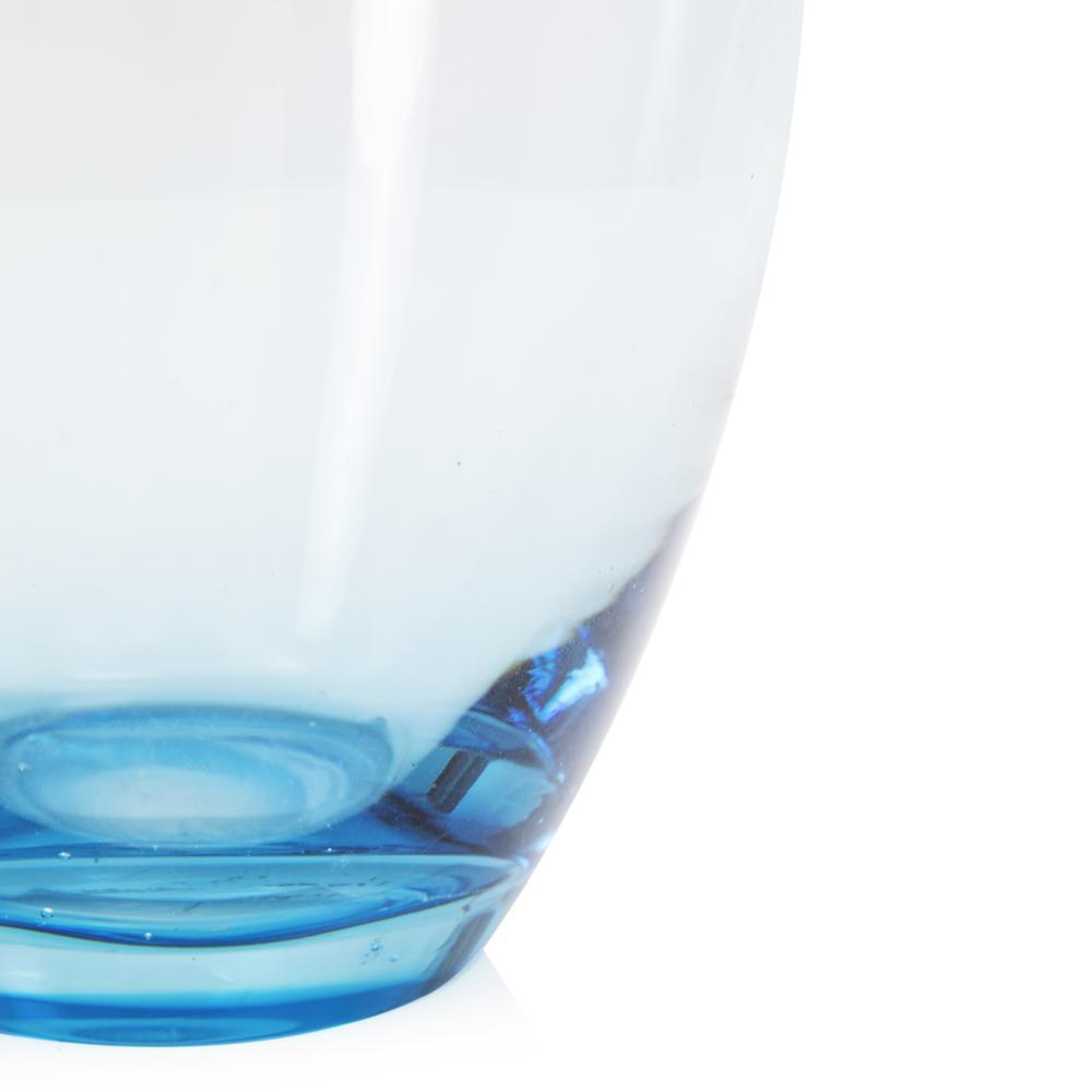 Details: Blue Aqua glass vase with clear and opaque design. Dimensions: 9" H x 6" W x 6" D