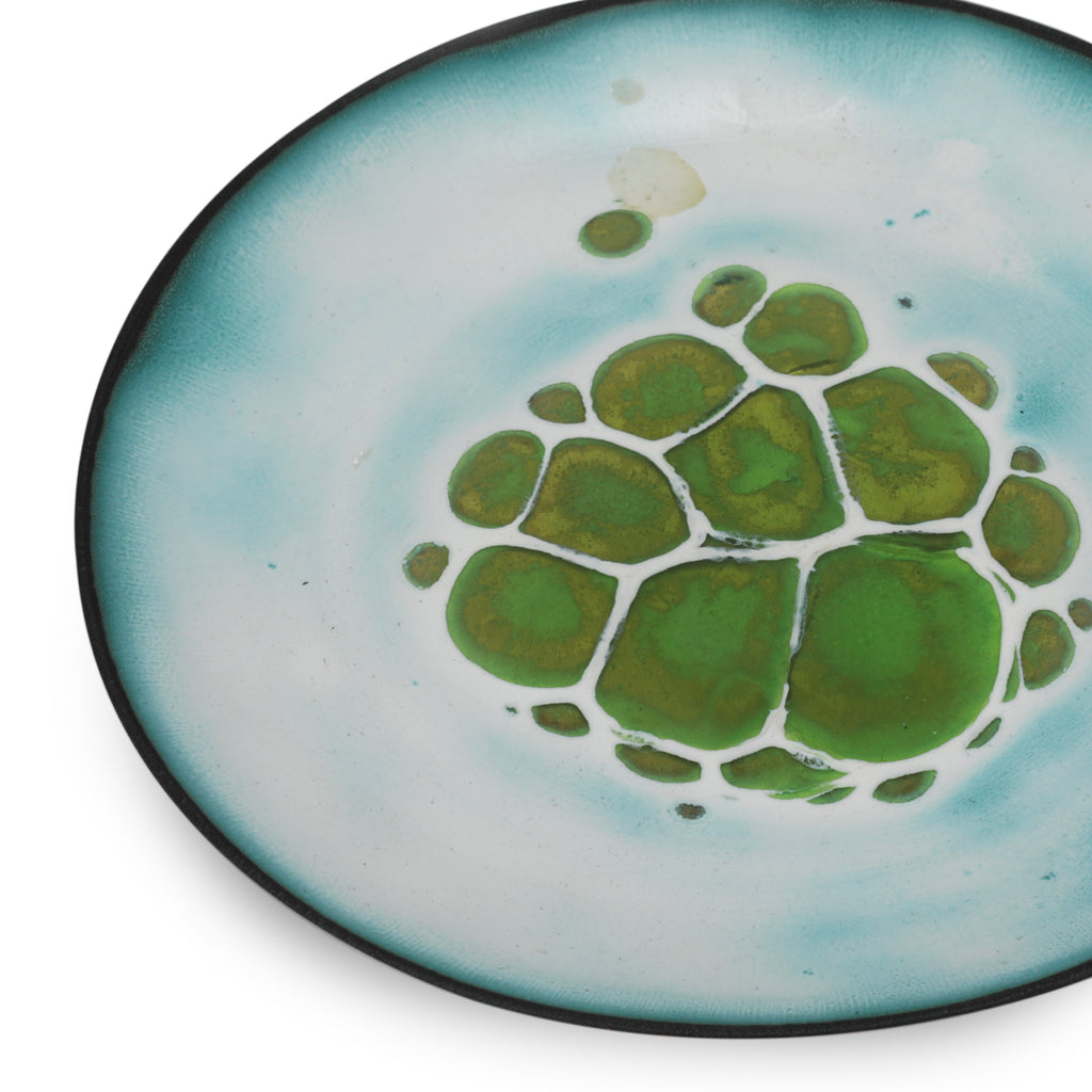 Details: Blue plate with dark outer edge and green inlay. Dimensions: .5" H x 6" D
