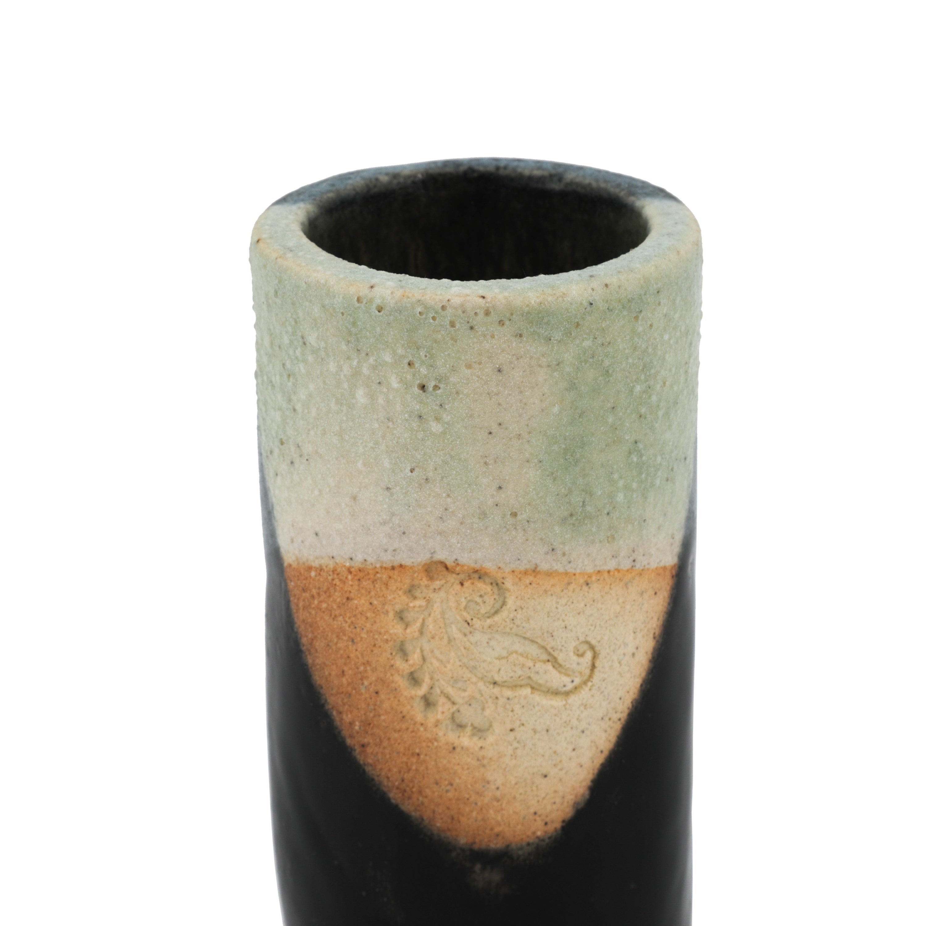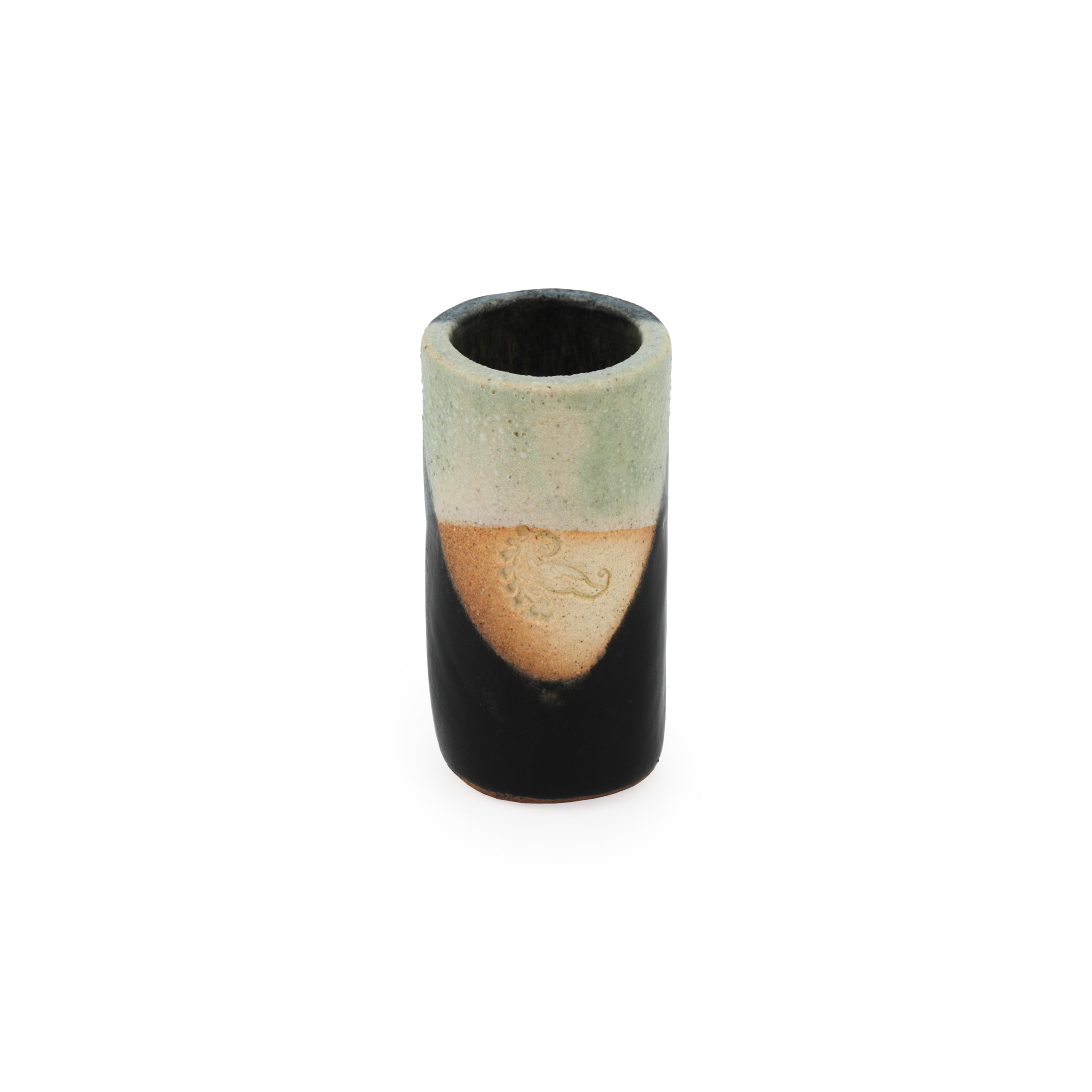 Details: Small ceramic cup with various natural tones. Dimensions: 3.5" H x 2" D