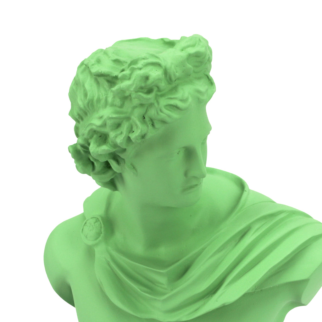 Details: Painted metal bust of the Greek god Apollo **available separately: twin bust of the goddess Artemis Dimensions: 12.5" H x 9" W x 5" D...
