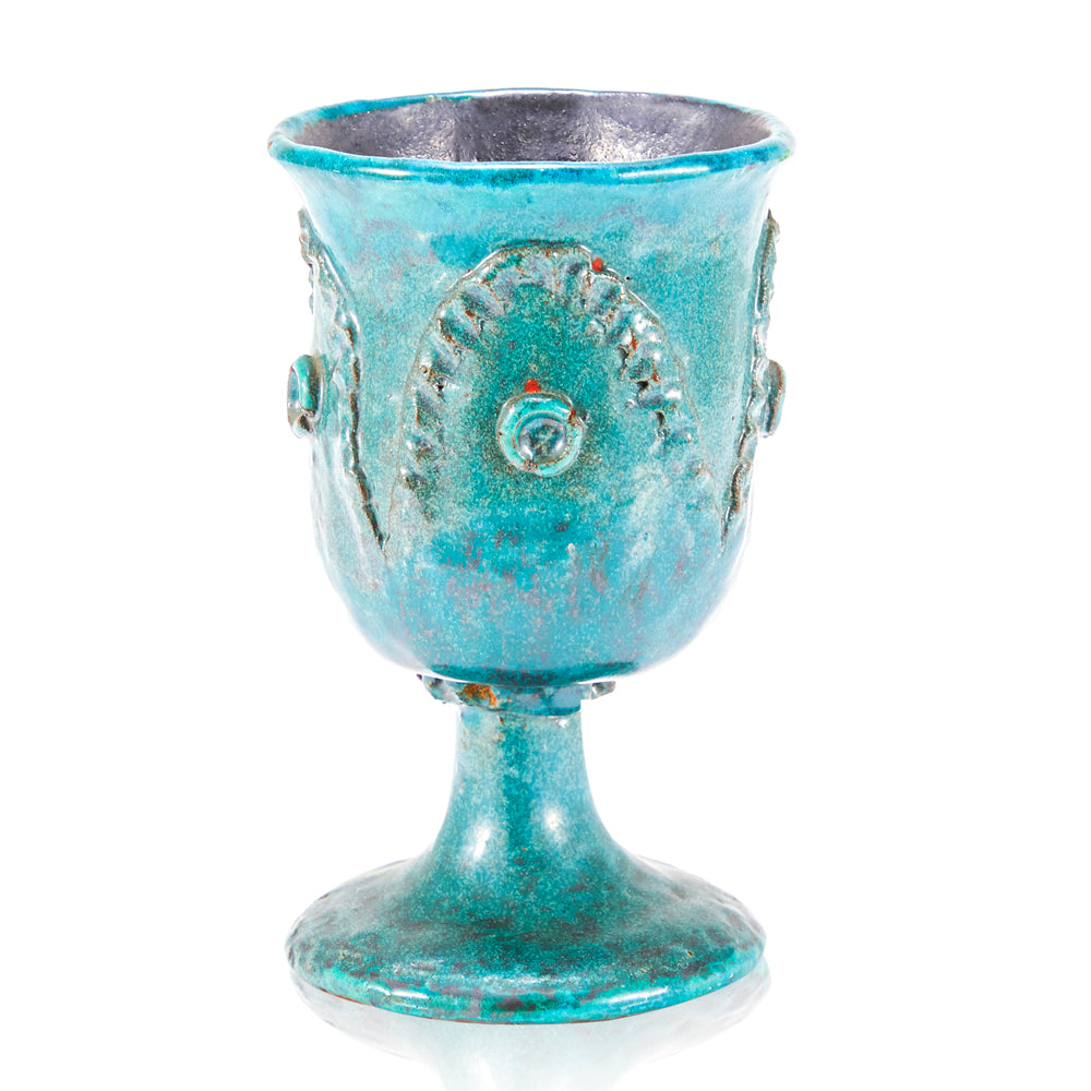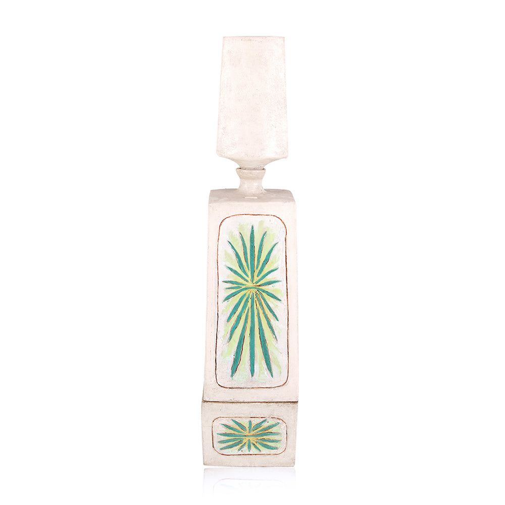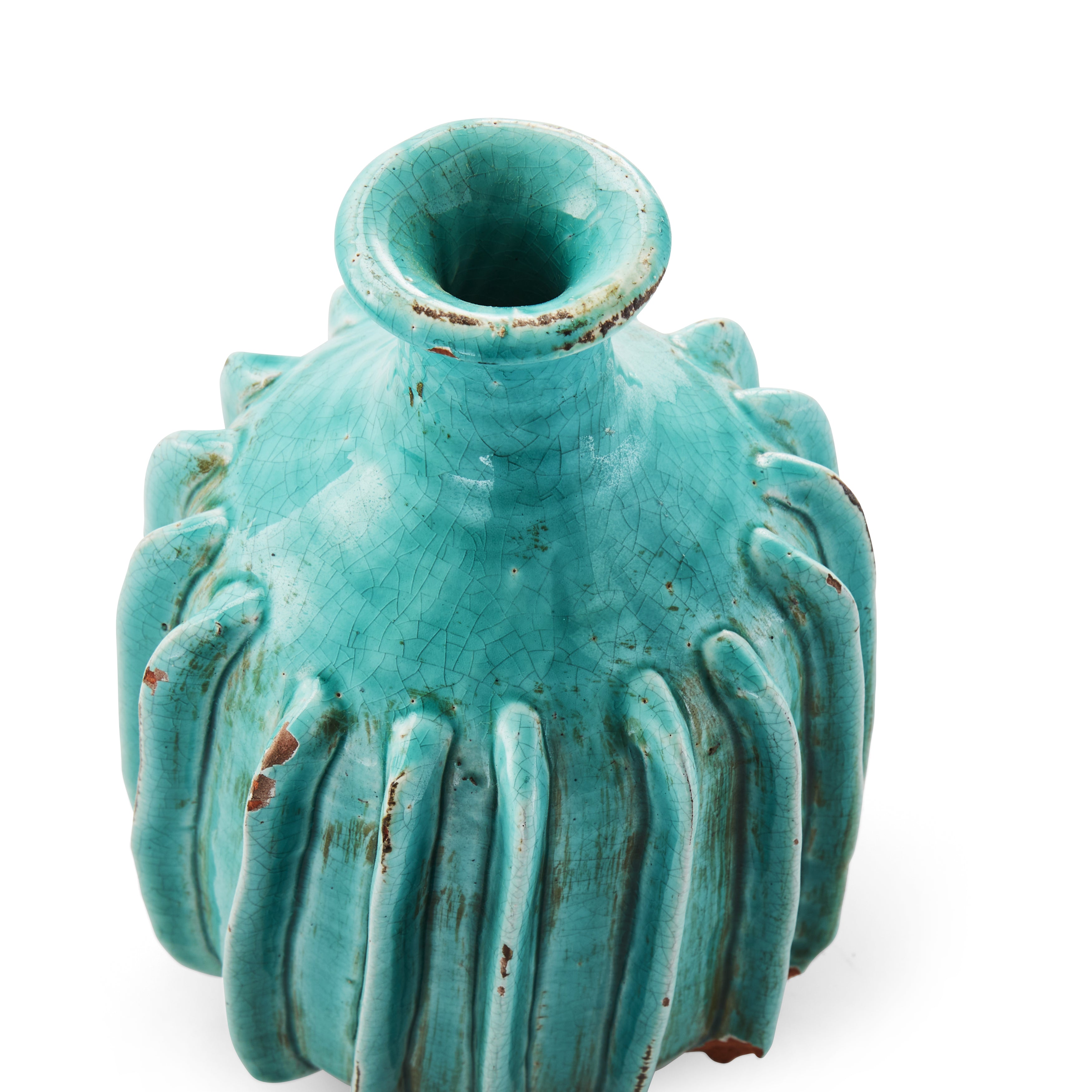 Details: A jade green vase with Greek figure Dimensions: 10" H x 6" W x 6" D Quantity: 1