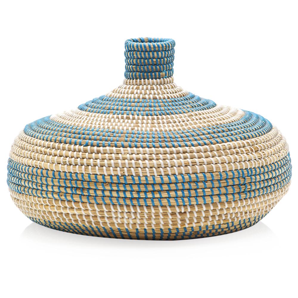 Details: Small tan and green round woven basket with a single handle on the side Dimensions: 8.5" H x 8" W x 8" D Quantity:...