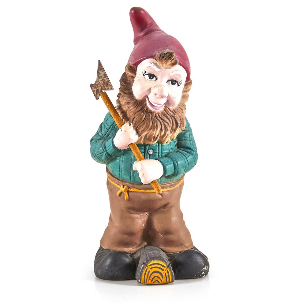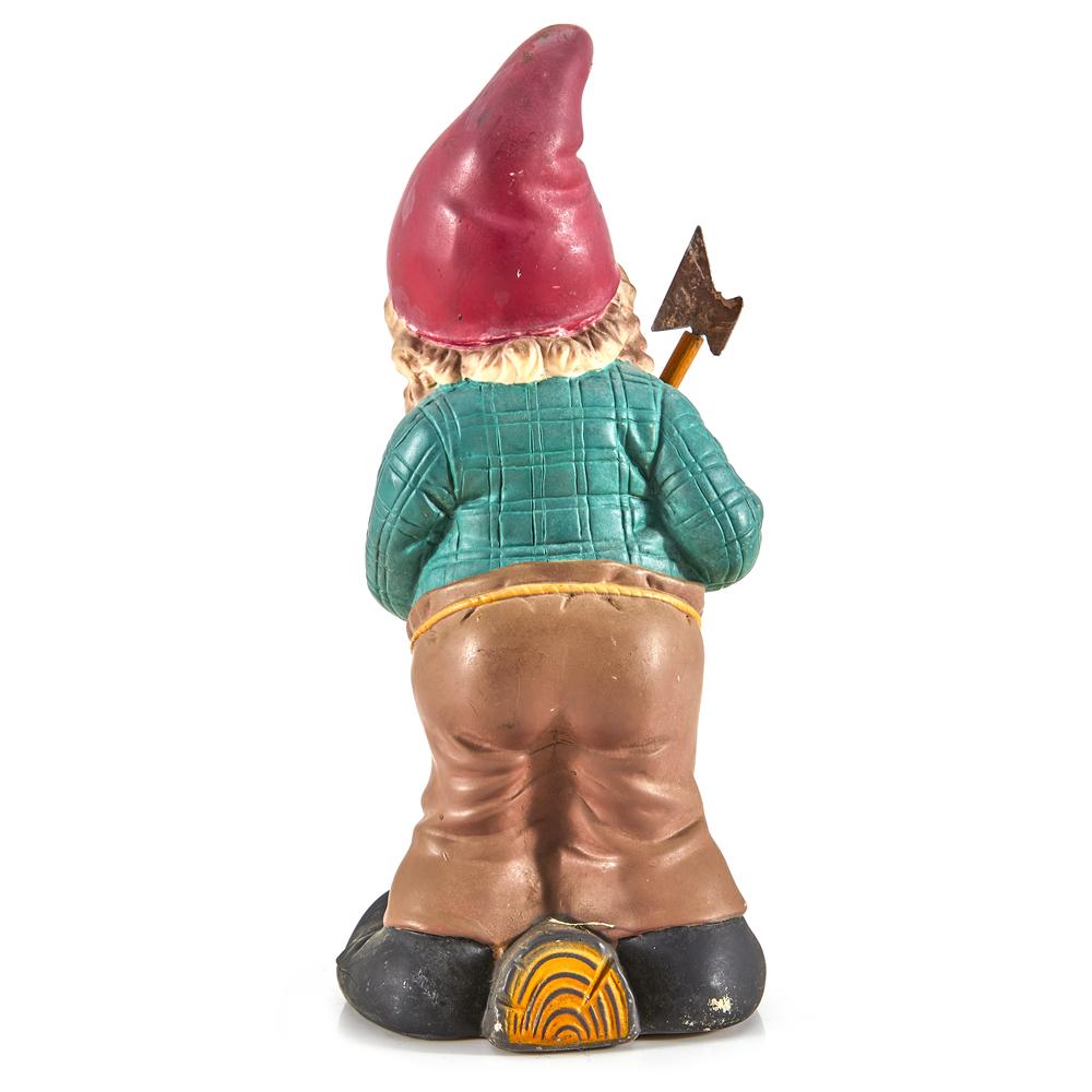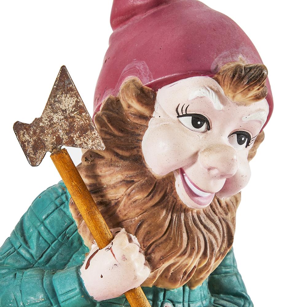 Details: Lawn gnome chopping wood with axe Dimensions: 10.25" H x 4.5" W x 4.25" D Quantity: 1