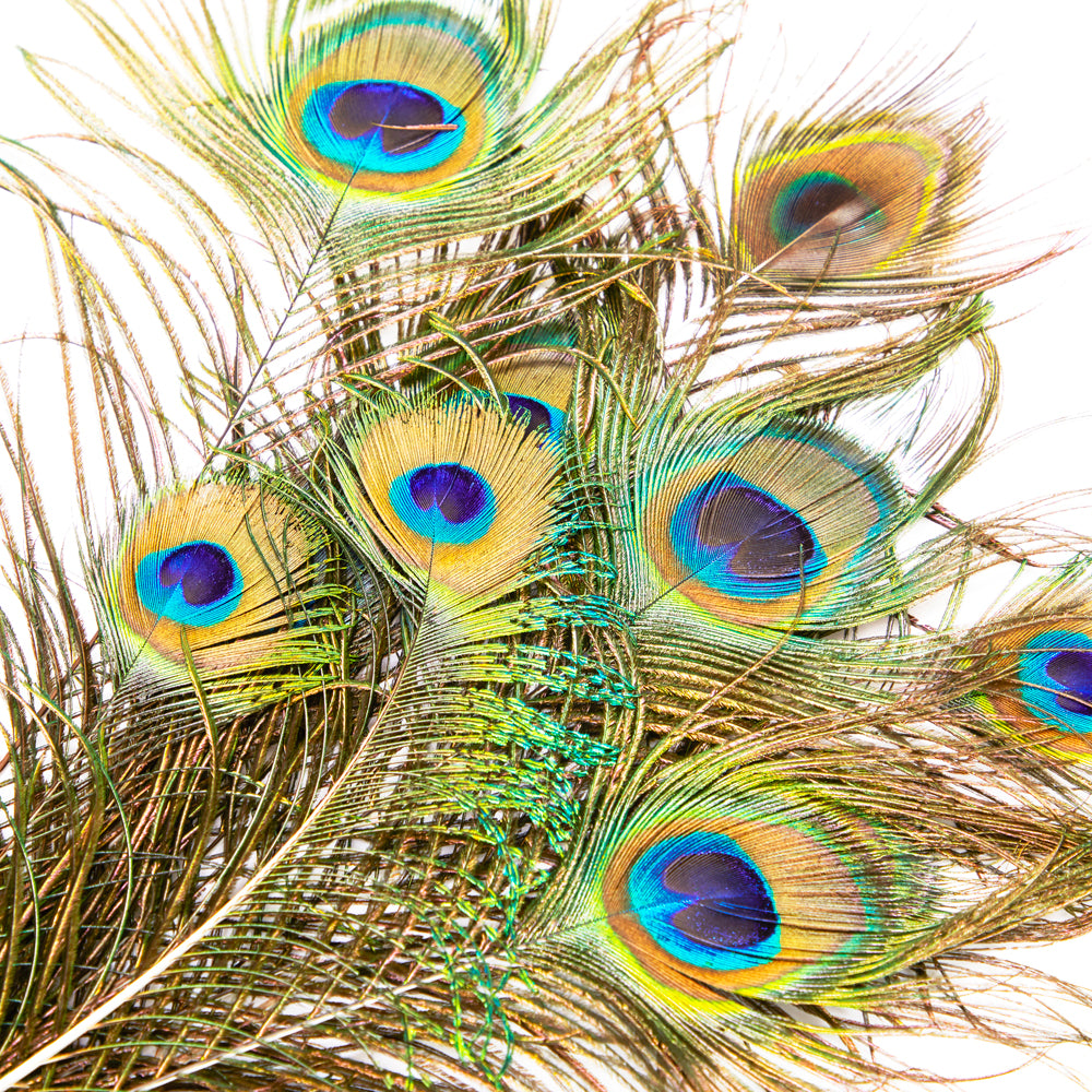 Details: Set of peacock feathers Dimensions: 22" H x 9" W x 5" D Quantity: 9